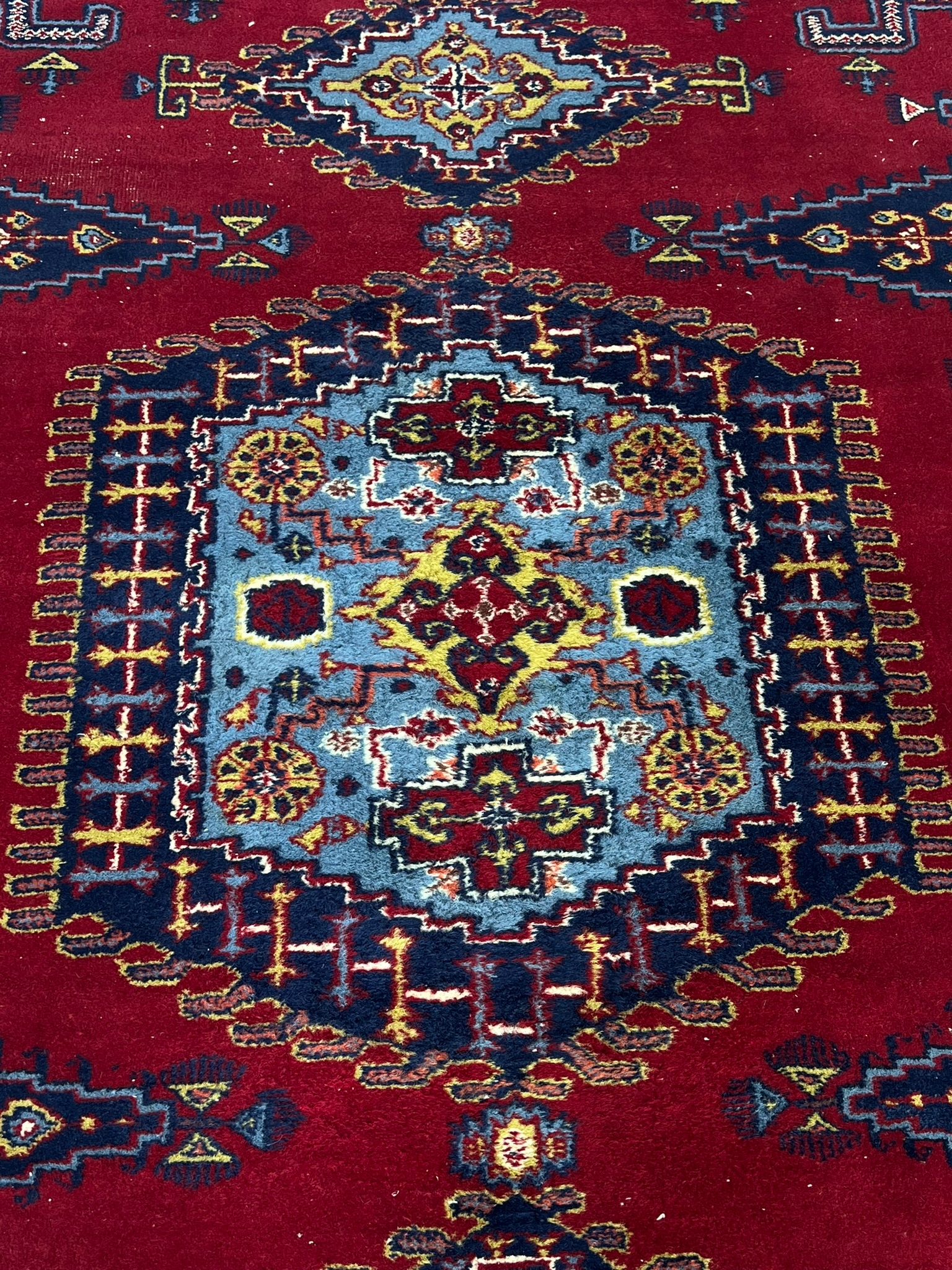 - Uwagi: krawędź dywanu jest bardziej zużyta, w niektórych miejscach widoczne przetarcia wełny