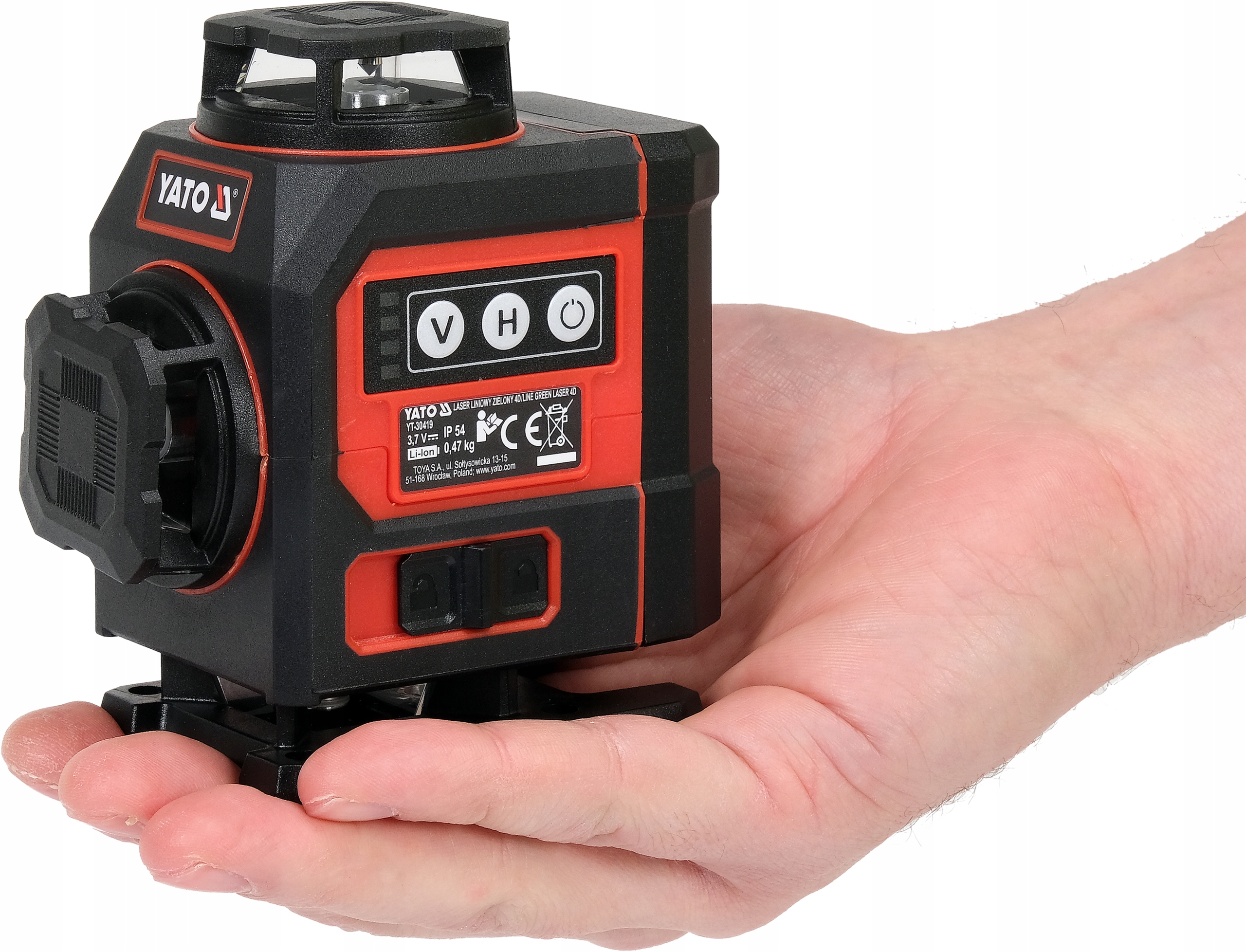 Samopoziomujący laser czteropłaszczyznowy 4D YATO w wersji mini z zieloną wiązką.