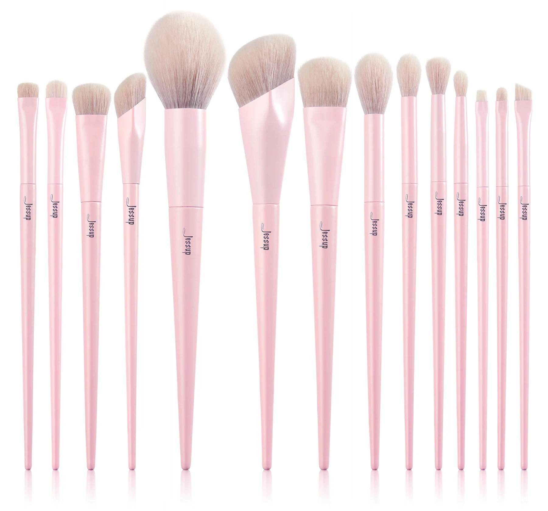 Makeup Lover - Crystal Pink - 14 Pcs Comprehesive Collection IV marki JESSUP. Zestaw prezentowy. Składa się z 14-nastu pędzli do makijażu twarzy. Pochodzi z serii Makeup Lover, która dedykowana jest osobom kochającym makijaż, i nie bojącym się z nim eksperymentować. Wykonane zostały z ultra premium, cienkiego włosia syntetycznego przyjaznego dla wegan. Umożliwią sprawne i szybkie wykonanie codziennego makijażu. Pędzle posiadają delikatnie różowy odcień rączki oraz umieszczone zostały w uroczym, kobiecym kartoniku, dzięki czemu zestaw idealnie nadaje się na prezent.
