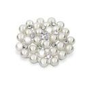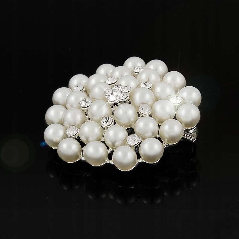 Piękna broszka ozdobiona perłami i cyrkoniami. Oprawa wykonana z metalu w powłoce galwanicznej srebrnej, zapięcie na agrafkę.