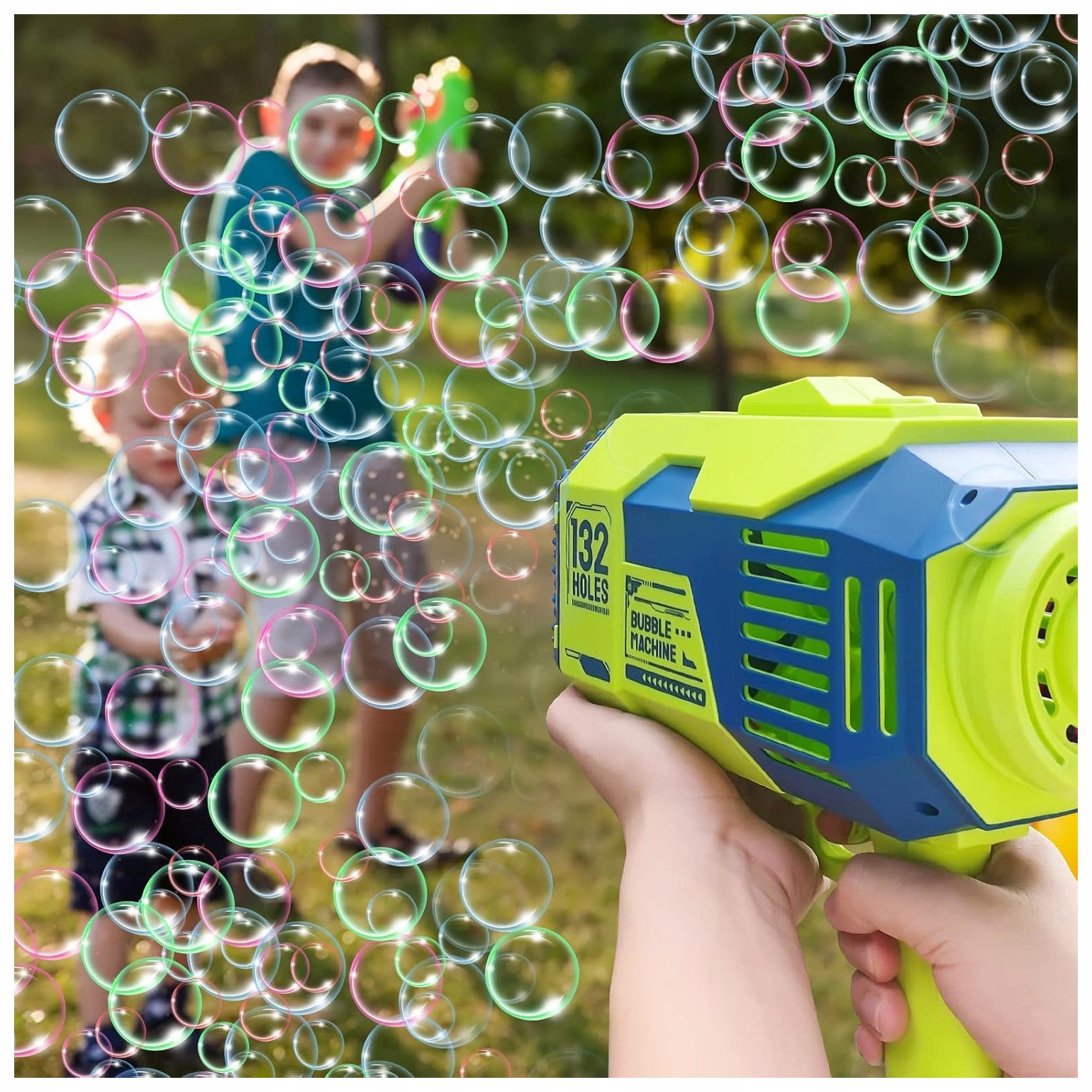 ✅ Pistolet z 132 dyszami tworzy kolorowy pokaz baniek w kilka sekund – bez dmuchania, bez wysiłku!