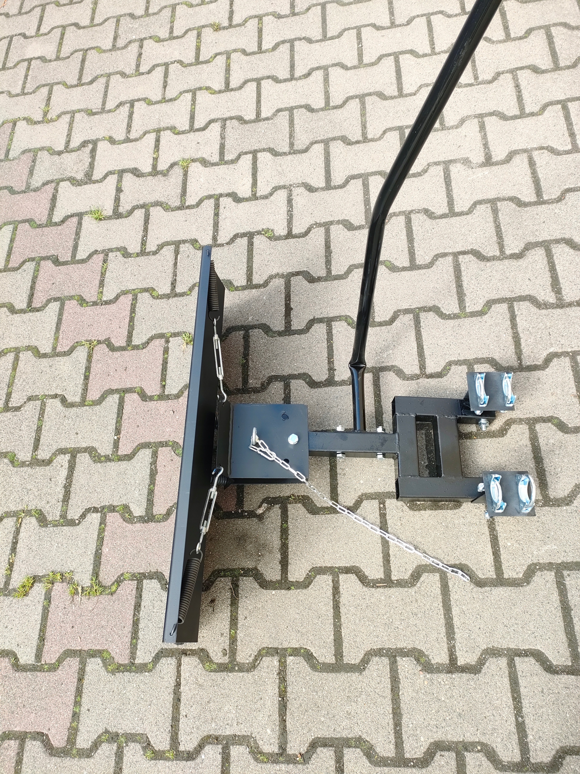 Pług odgarnia śnieg w lewą , prawą stronę i na wprost .Zakończony od dołu gumą .UWAGA: Posiada amortyzację,na sprężynach reaguje na nierówności, np. nierówna kostka, podłoże. Plug można zamontować do wybranego pojazdu , montaż np. do glebogryzarek, kosiarek i innych urządzeń.Można podwiesić za cybanty do rurki, można przykręcić do mocowania przedniego bagażnika małego quada, pług wielofunkcyjny . Pług ma bardzo solidną i stabilną konstrukcję .Do pługa łańcuszek do podwieszenia oraz rączka do unoszenia.Pług jak na zdjęciach.