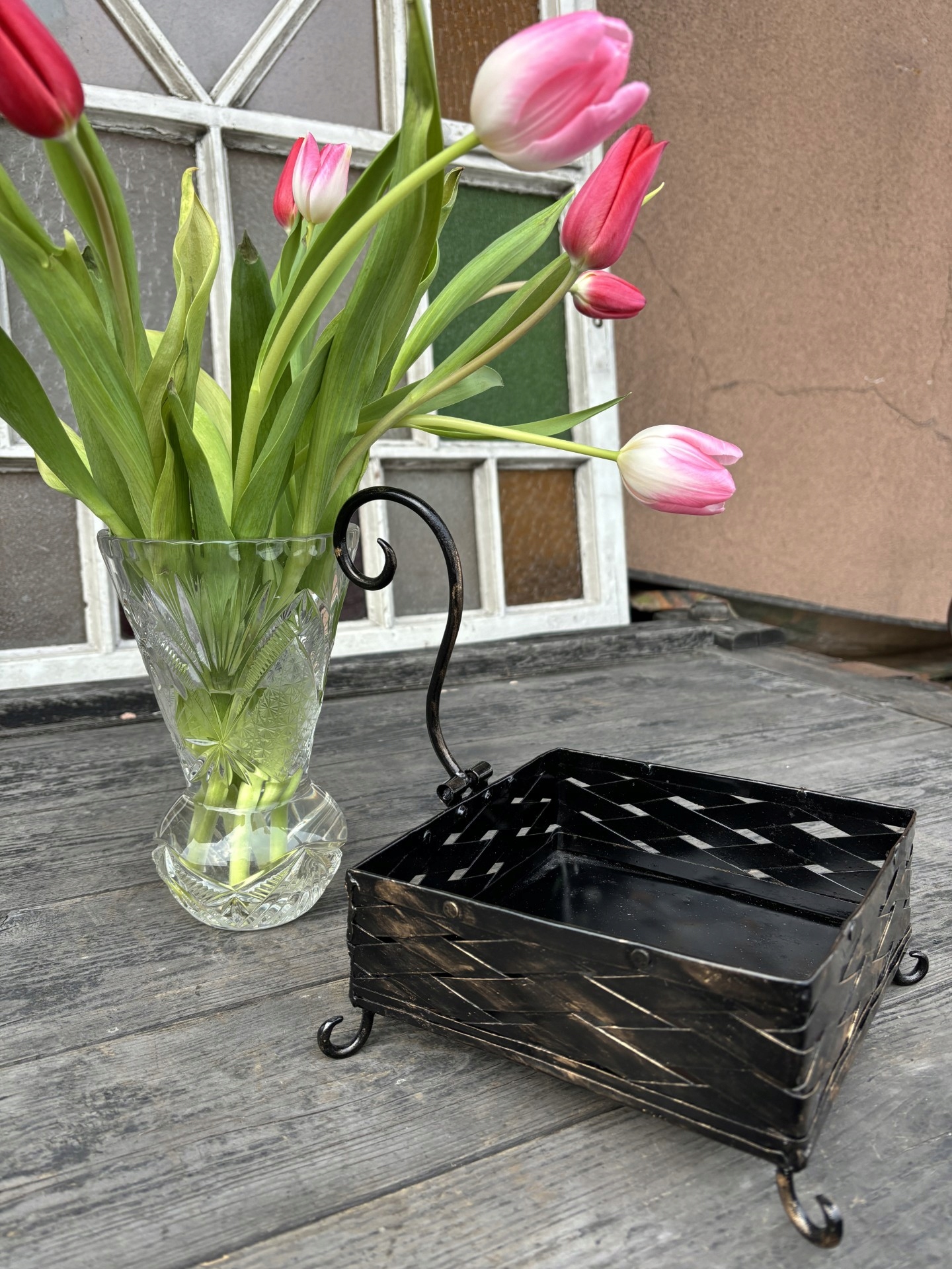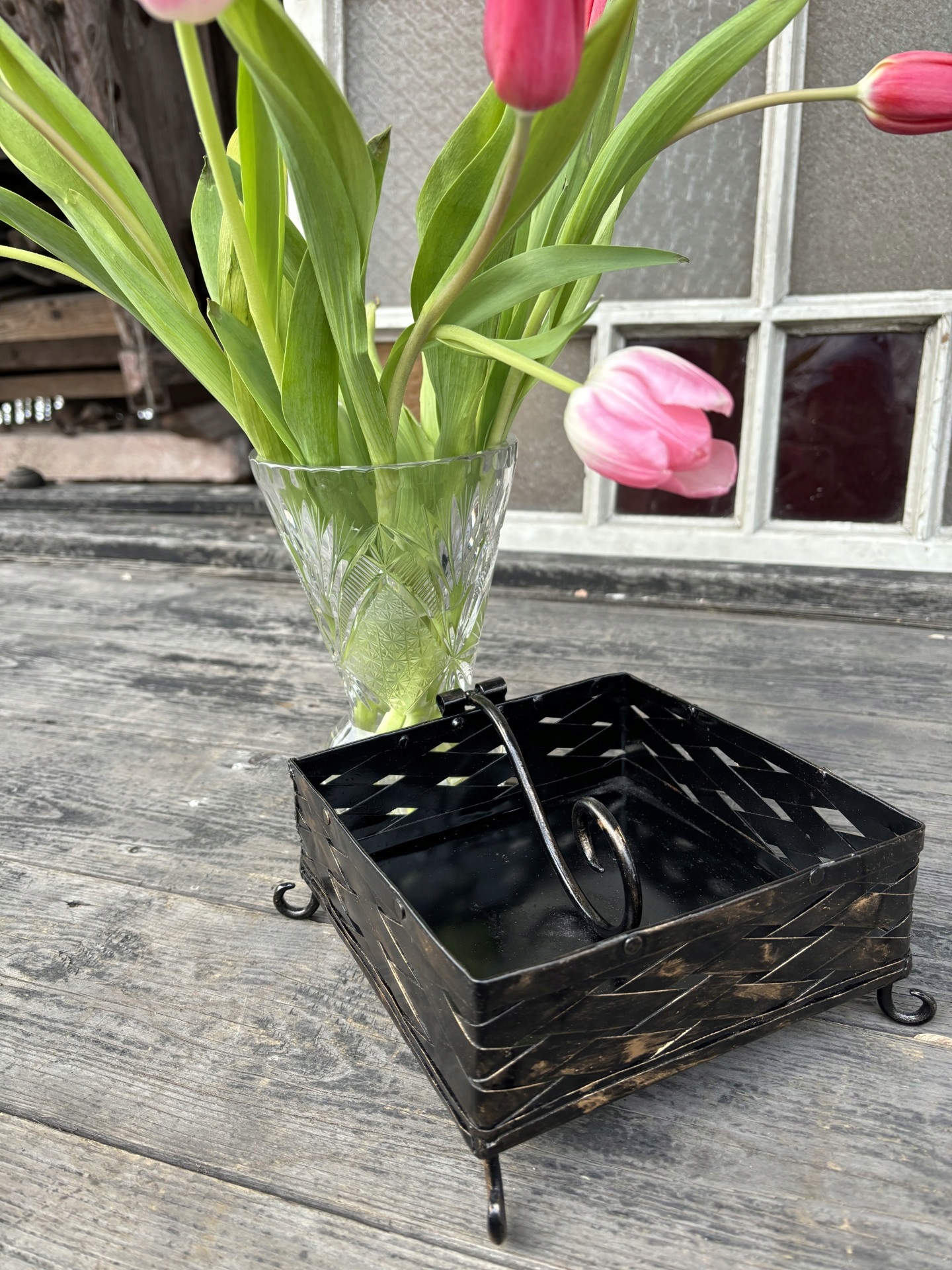 Stary metalowy serwetnik prawdopodobnie z okresu PRL. Stan widoczny na załączonych zdjęciach. Wymiary; wys. 8,5 x 19,5 x 19,5 cm.