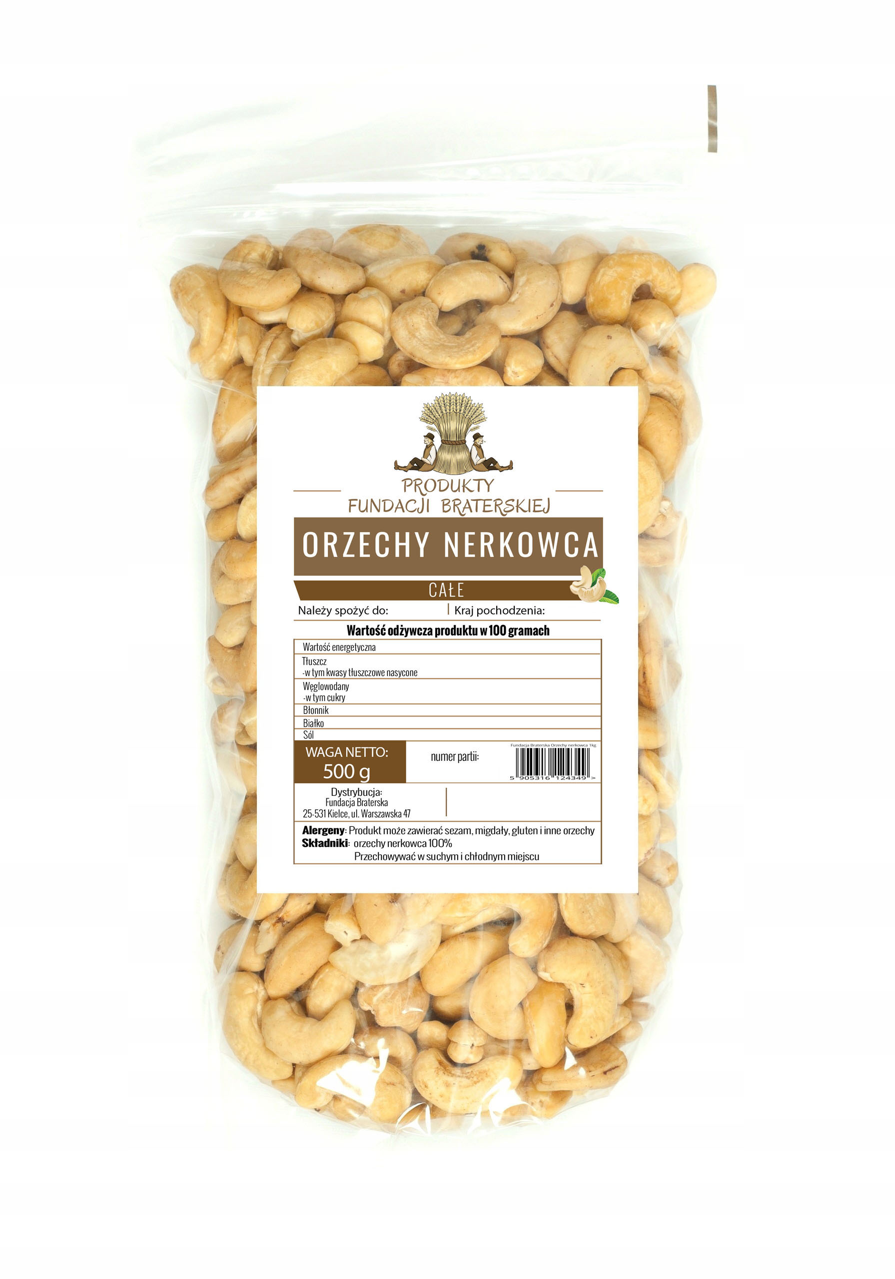 Торговое название Orzechy nerkowca połówki 500g - Fundacja Braterska