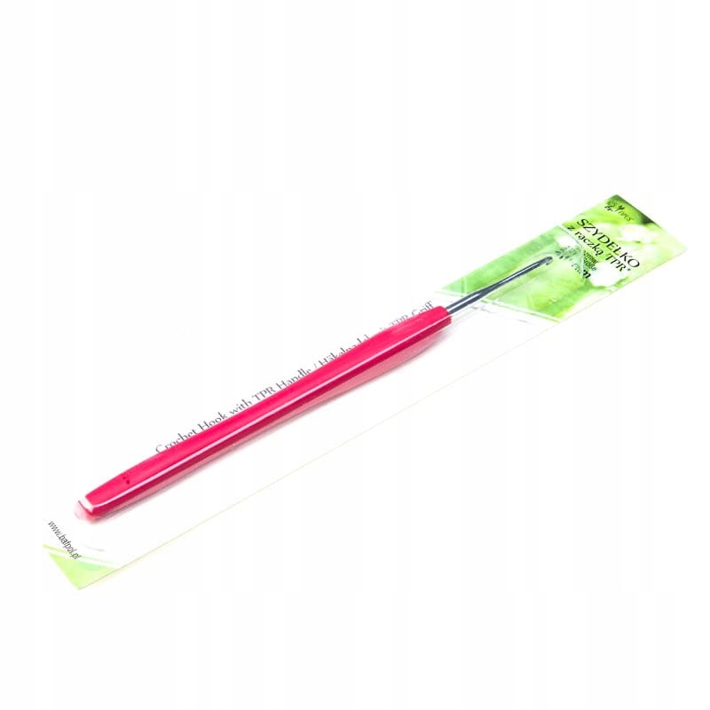 Szydełka aluminiowe z rączką z tworzywa TPR. Thermo Plastic Rubber, Kauczuk termoplastyczny, rodzaj miękkiej i bezwonnej gumy o dużej odporności n a ścieranie.