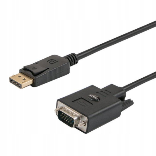 Kabel Savio CL-92 DisplayPort na VGA o długości 1,8 m umożliwia łatwe podłączenie komputera z wyjściem DisplayPort do monitora lub projektora z wejściem VGA.