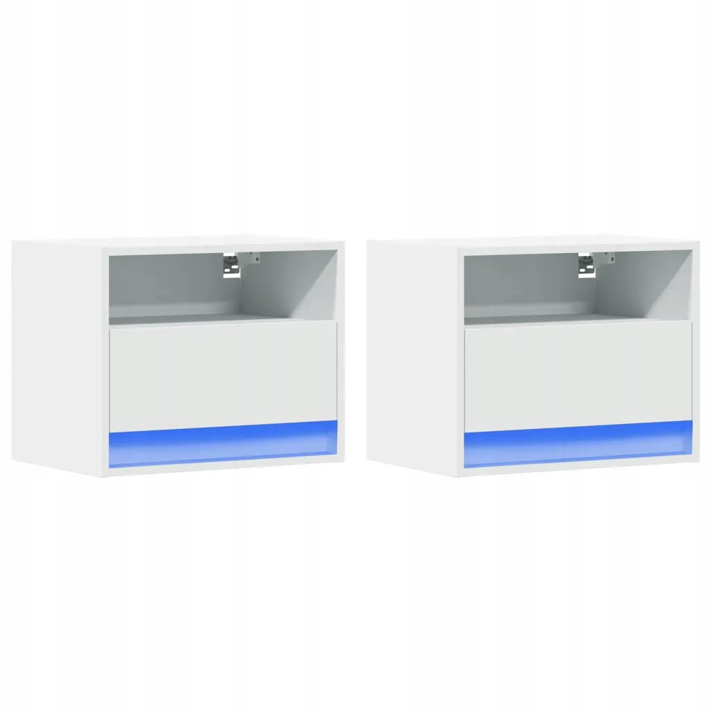Dopełnij swoją sypialnię za sprawą tych montowanych na ścianie szafek nocnych z podświetleniem LED! Z łatwością skomponują się one z Twoimi meblami w dowolnym stylu!