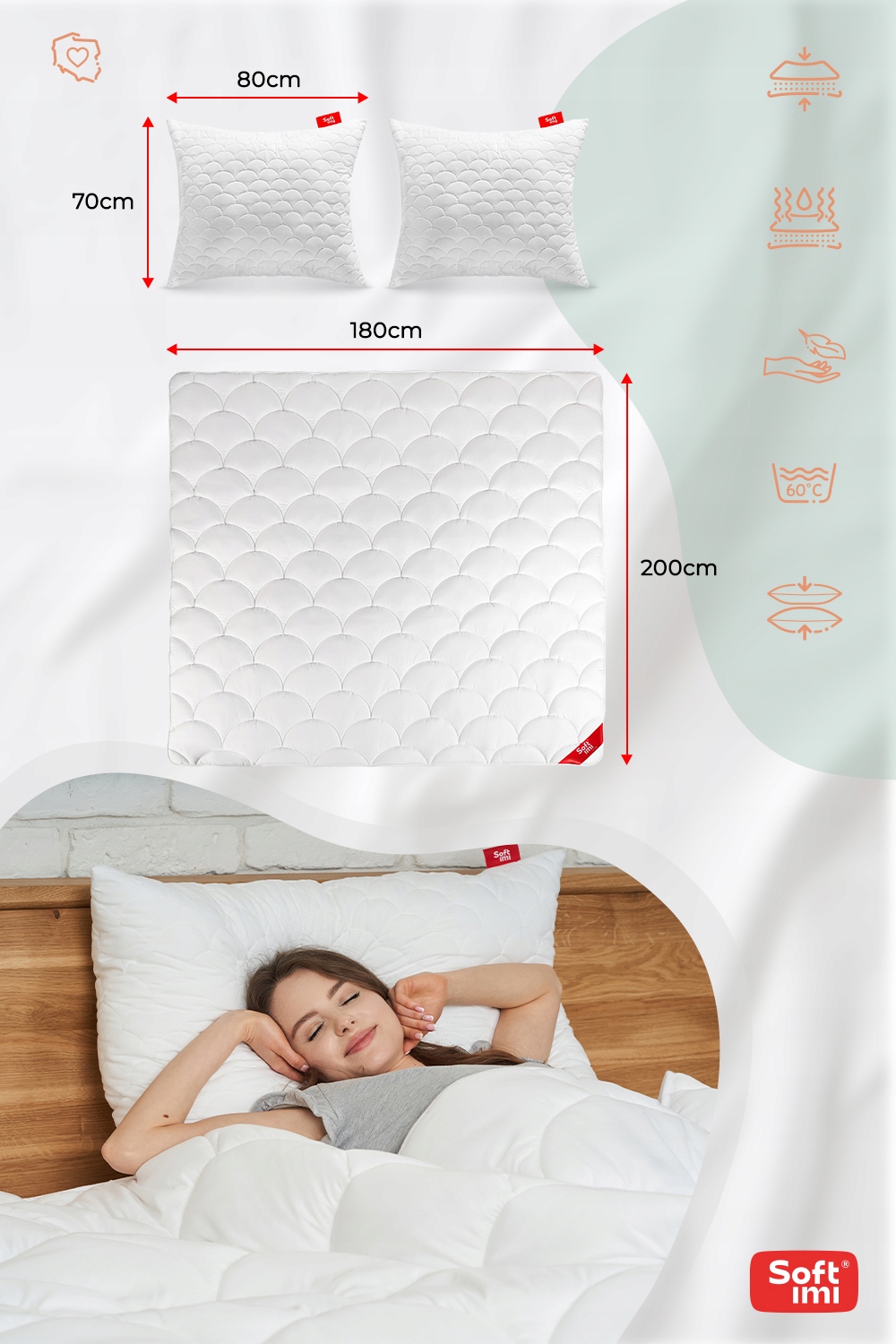 Kupując poduszki SOFTIMI z tej oferty, masz pewność, że trzymasz oryginalny produkt klasy PREMIUM, uszyty w Polsce.