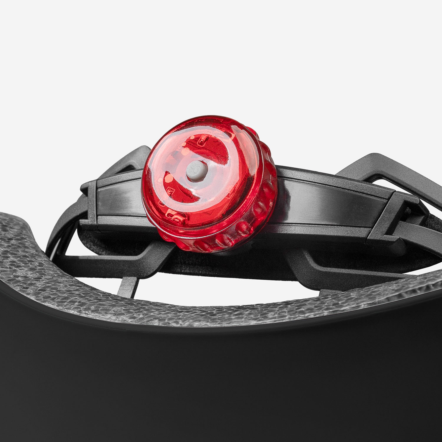 Kask Cariboo został wyposażony w tylną lampkę. Zasilana jest ona bateriami i umożliwia ustawienie jednego z trzech trybów świecenia – ciągły, pulsowanie szybkie lub wolne. Światło sprawia, że maluch jest dobrze widoczny nawet po zmroku czy przy w pochmurny dzień.
