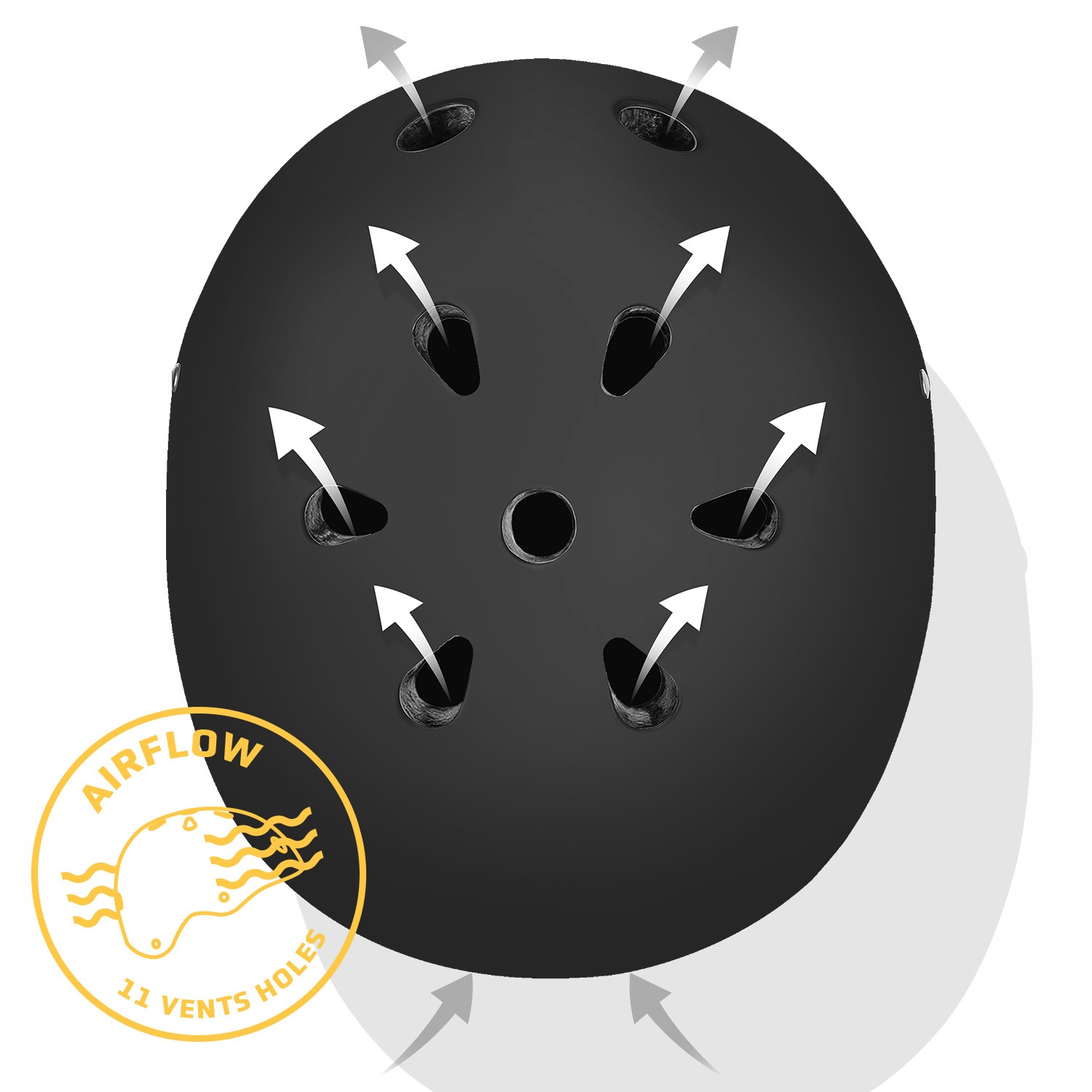 Odpowiednią cyrkulację powietrza zapewnia 11-otworowy system wentylacyjny kasku. W trakcie intensywnej aktywności fizycznej nadmiar ciepła nie gromadzi się pod skorupą kasku, lecz wydostaje się na zewnątrz.