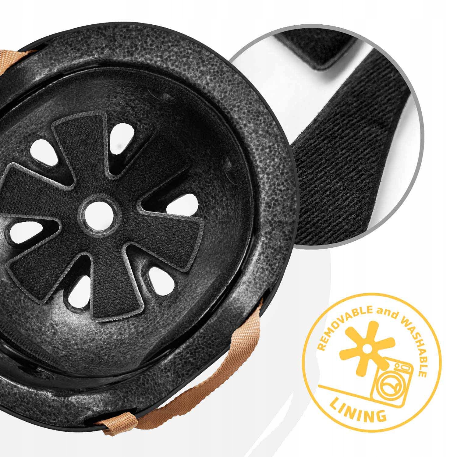 Kask wyposażony jest w wewnętrzne, wyjmowane gąbki, które pełnią podwójną funkcję. Umożliwiają precyzyjne dopasowanie kasku do kształtu głowy użytkownika, zapewniając stabilność podczas jazdy oraz gwarantują komfort noszenia dzięki miękkiej i przyjaznej strukturze. Co więcej, gąbki można łatwo wyjąć i wyprać, co pozwala zachować higienę i świeżość kasku nawet po intensywnym użytkowaniu.