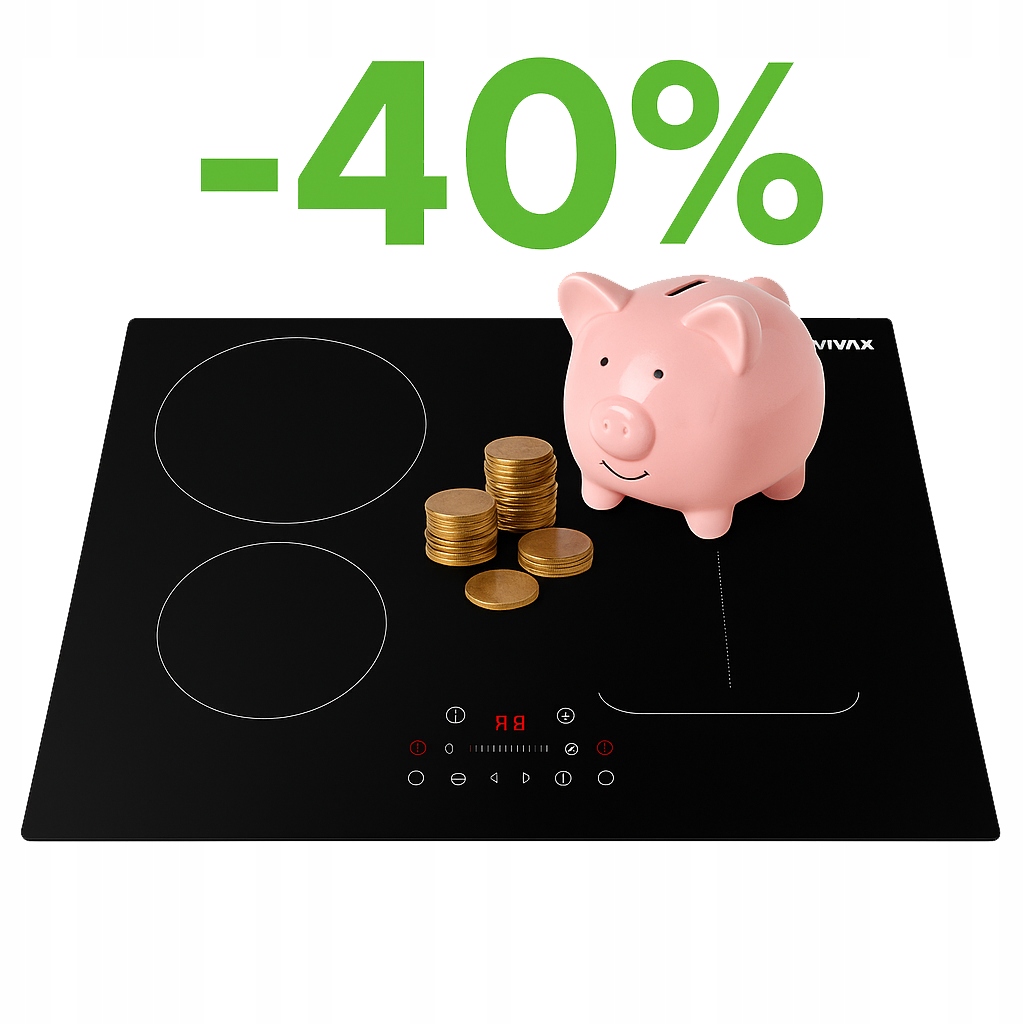 Dzięki najnowszej technologii indukcyjnej wbudowana płyta indukcyjna VIVAX BH-04MFZIN podgrzewa zawartość patelni, a nie talerz lub patelnię. W ten sposób energia jest kierowana bezpośrednio na gotowanie, bez utraty ciepła i zużycia czasu potrzebnego na podgrzanie patelni.