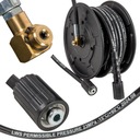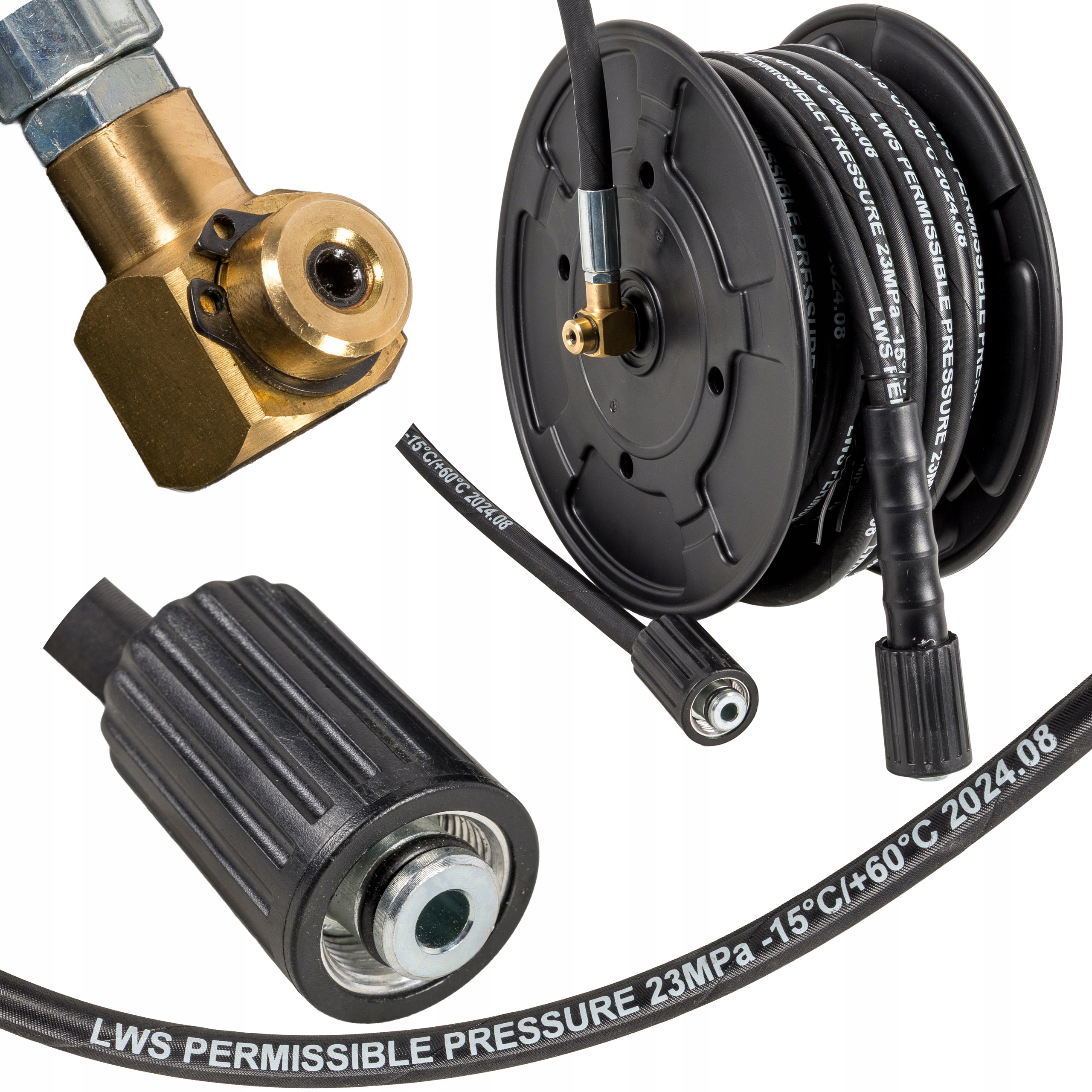 Myjka wysokociśnieniowa została wyposażona w niezwykle elastyczny, zbrojony wąż ciśnieniowy, który zapewnia wygodę i swobodę użytkowania. Wąż jest nawinięty na bęben zintegrowany z myjką, co stanowi znaczącą przewagę nad standardowymi zwijakami stosowanymi w większości urządzeń dostępnych na rynku. Dzięki tej innowacyjnej konstrukcji użytkownik może łatwo i komfortowo zwijać wąż, bez ryzyka jego splątania czy uszkodzenia.