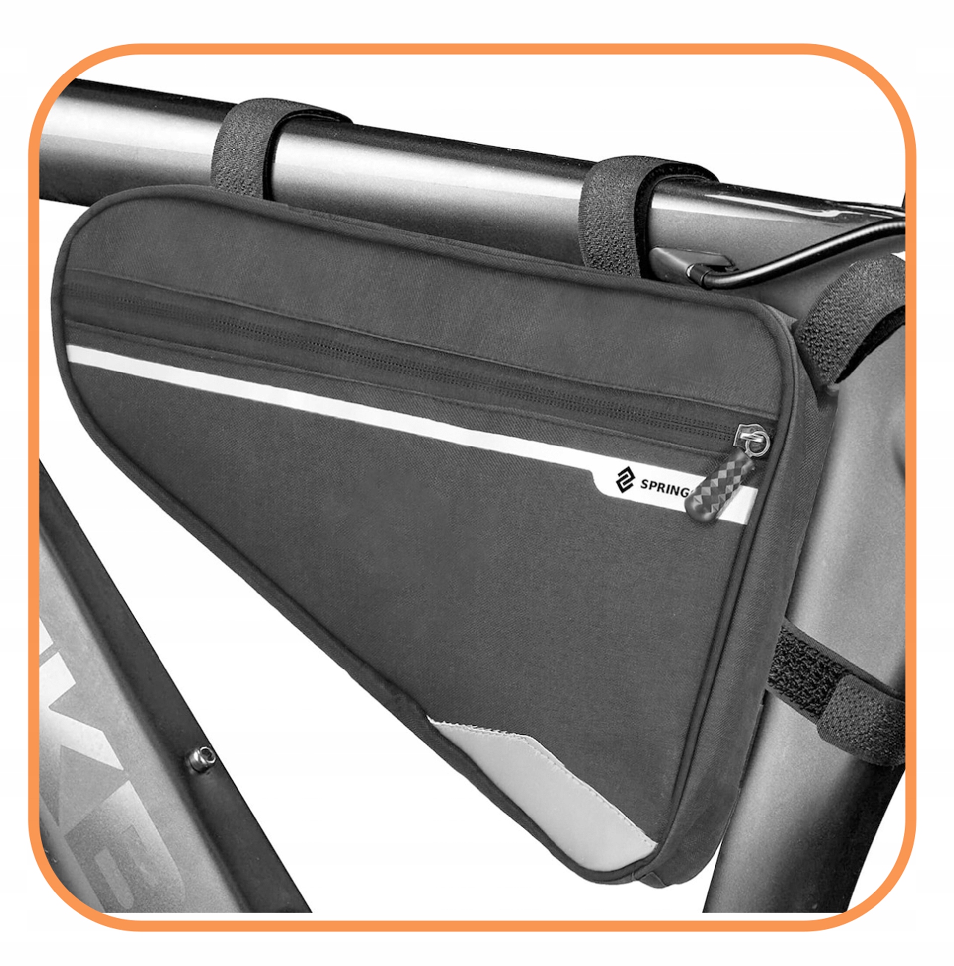 Torba rowerowa montowana jest za pomocą mocnych pasków na rzep. System montażu umożliwia zawieszenie produktu niemalże na każdym rowerze.