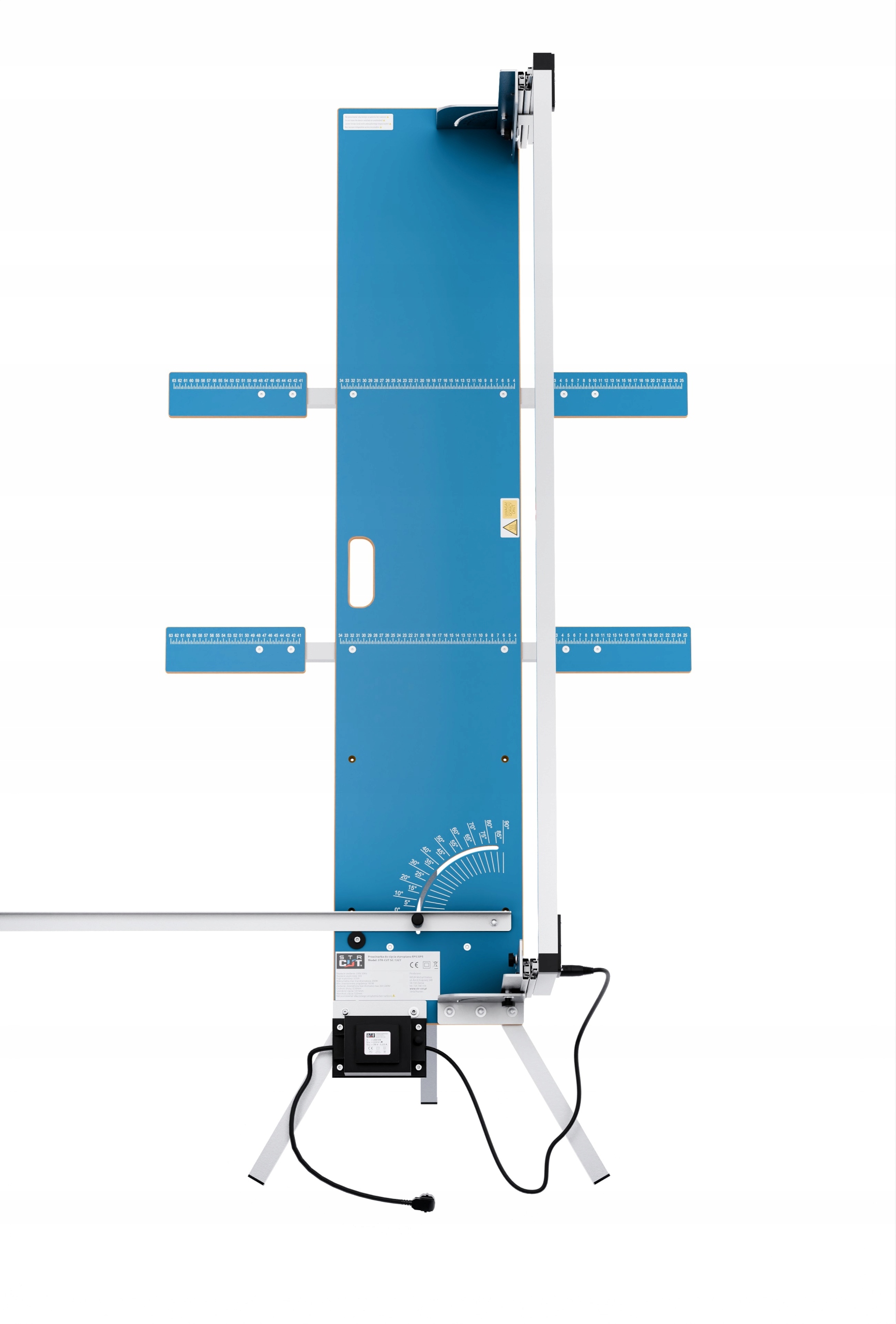 Blat wyposażony jest w dodatkowe miarki metryczne służącą do dokładnego docinania materiału.
