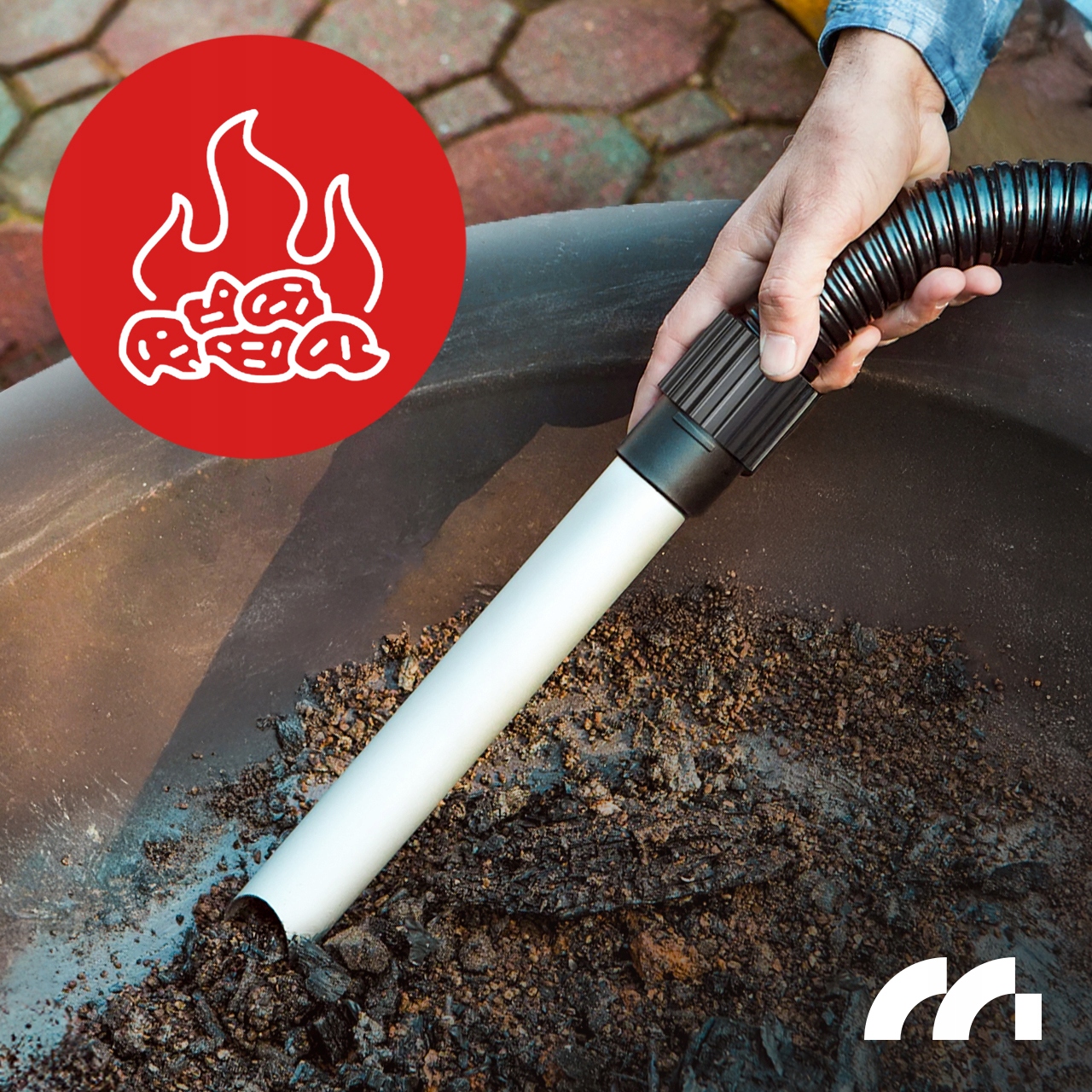 Пылесос оснащен жаростойкая алюминиевая трубка для пылеуловителя, жаростойкий бак, гибкий шланг изготовлен из очень прочного материала, заполненного металлической спиральной и термостойкой конструкцией, Пылесос имеет удобную ручку для переноски и фильтр HEPA для защиты возможность проветривания втягиваемой пыли или пыли.