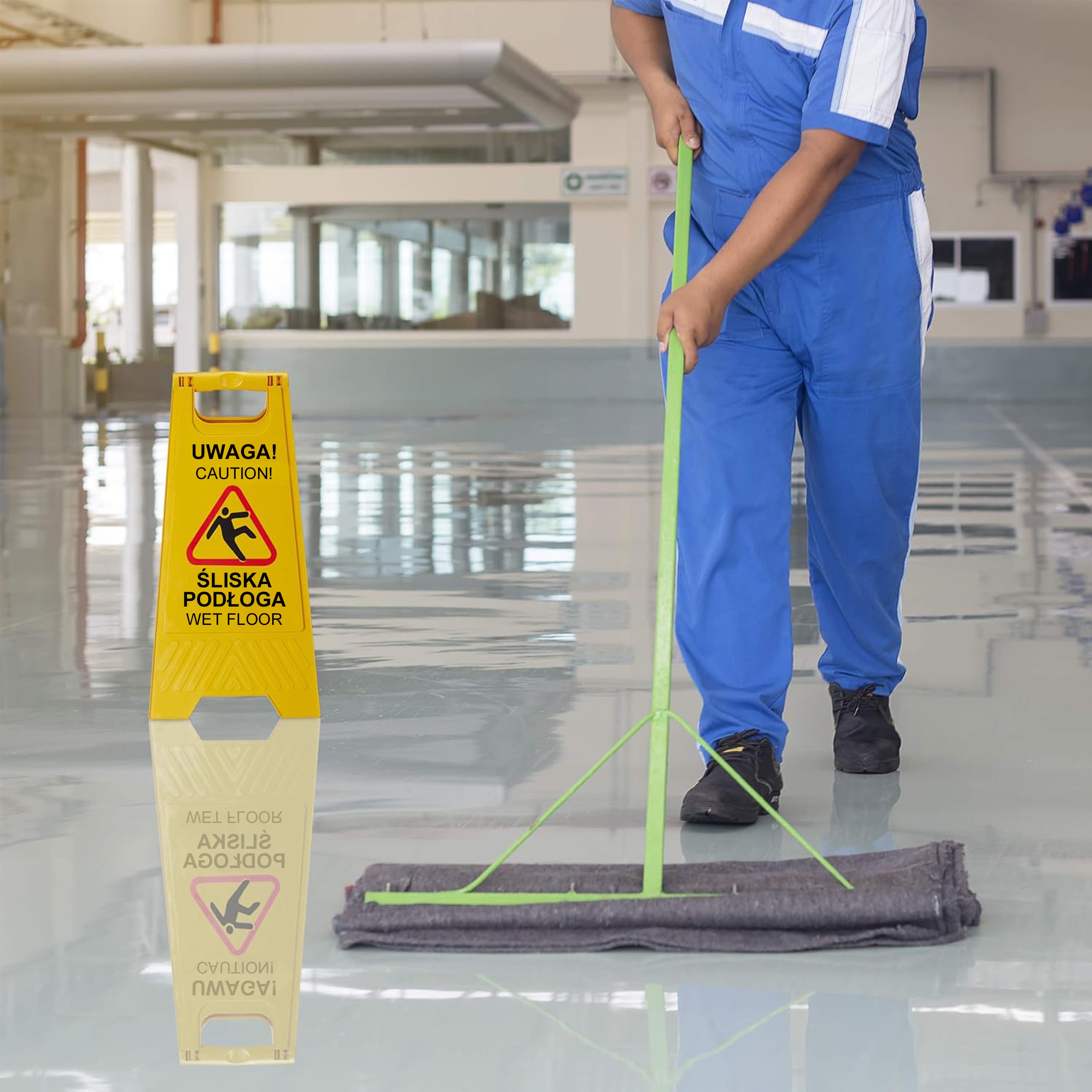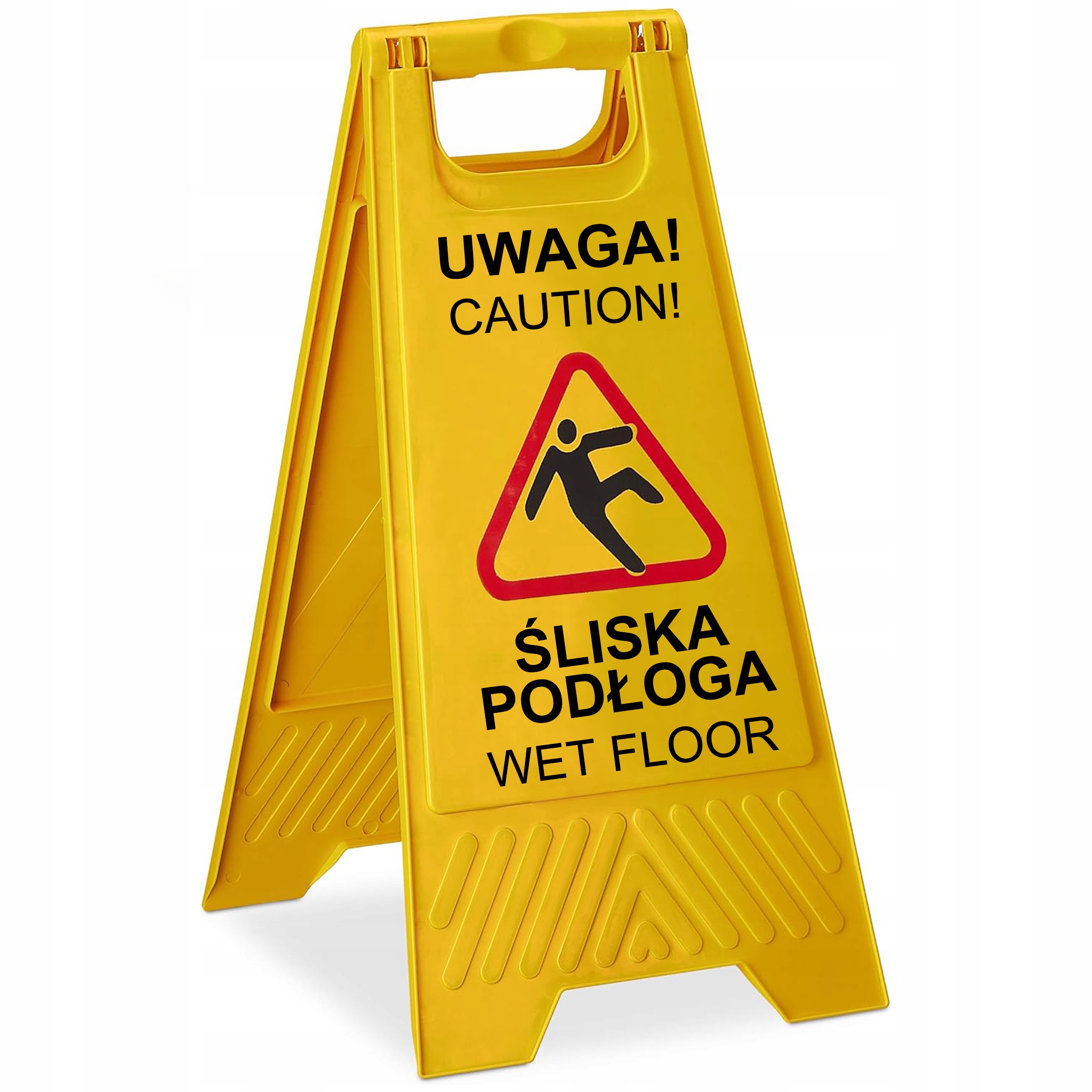 Zadbaj o bezpieczeństwo klientów, pracowników i gości! Nasza wyraźna, dwustronna tablica ostrzegawcza natychmiast przyciąga uwagę i zapobiega wypadkom na mokrej lub śliskiej powierzchni. Niezastąpiona w każdym miejscu publicznym i zakładzie pracy.