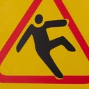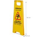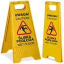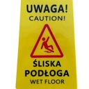 Nie ryzykuj poślizgnięcia i urazu! Wyraźne kolory, międzynarodowe piktogramy i dwujęzyczny napis sprawiają, że każdy – niezależnie od języka – zrozumie komunikat i zachowa ostrożność.