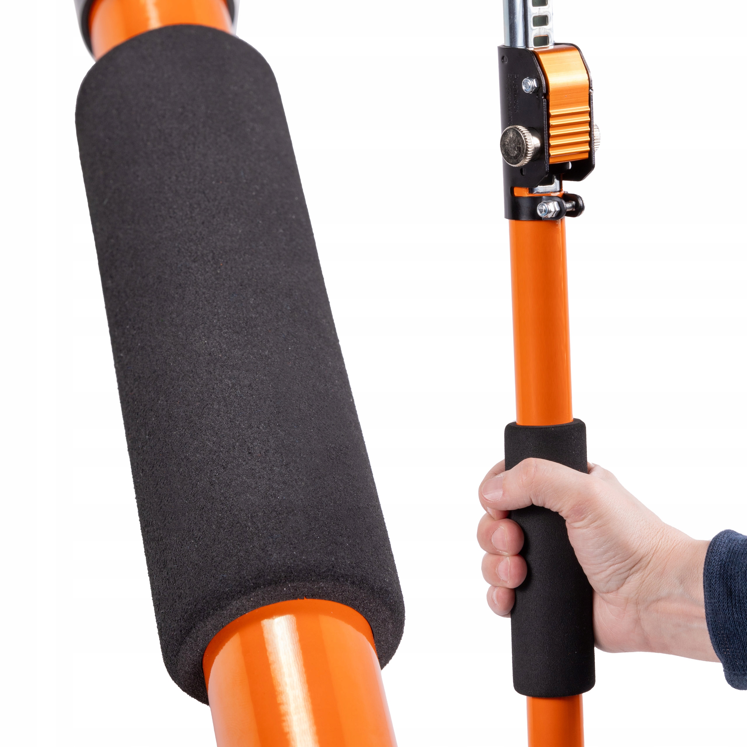 Podpora została wyposażona w dodatkową piankę na rurze, które ułatwia pewny chwyt i manewrowanie całym narzędziem.