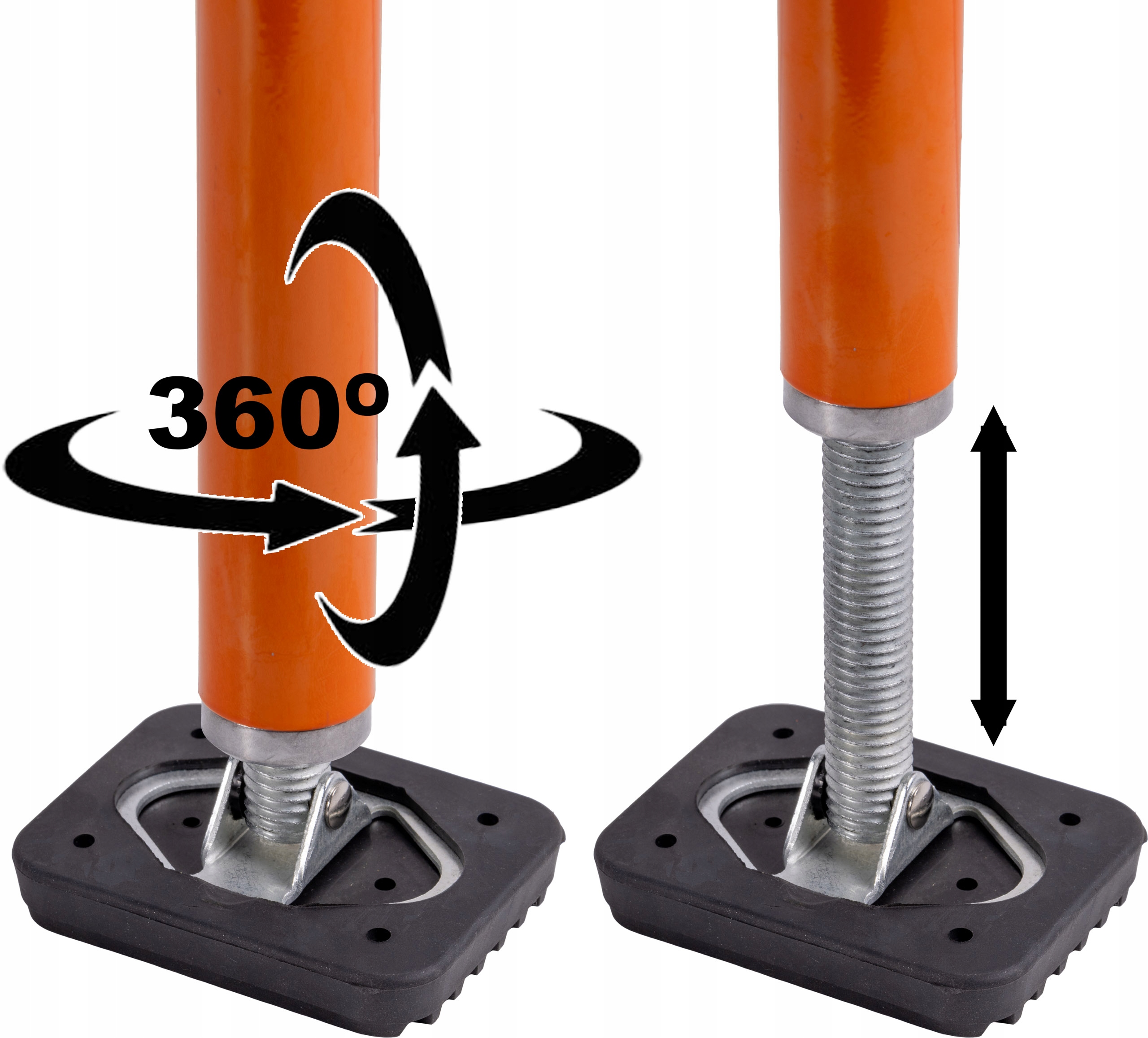 Stopy dociskowe umieszczone na ruchomych przegubach pozwalają na odpowiednie ułożenie i dopasowanie podpory.