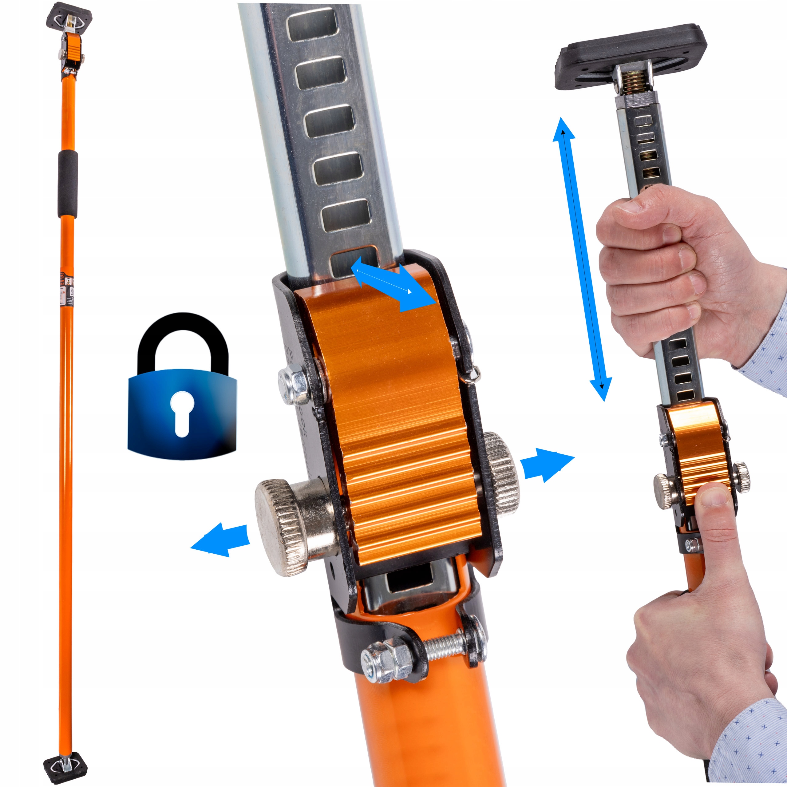 Zapadkowy mechanizm blokady plus dodatkowe grube śruby zapewniają bezpieczne i sprawne użytkowanie zarówno przez profesjonalistów jak i amatorów a jej wydłużona wersja sięga do nawet 290cm!