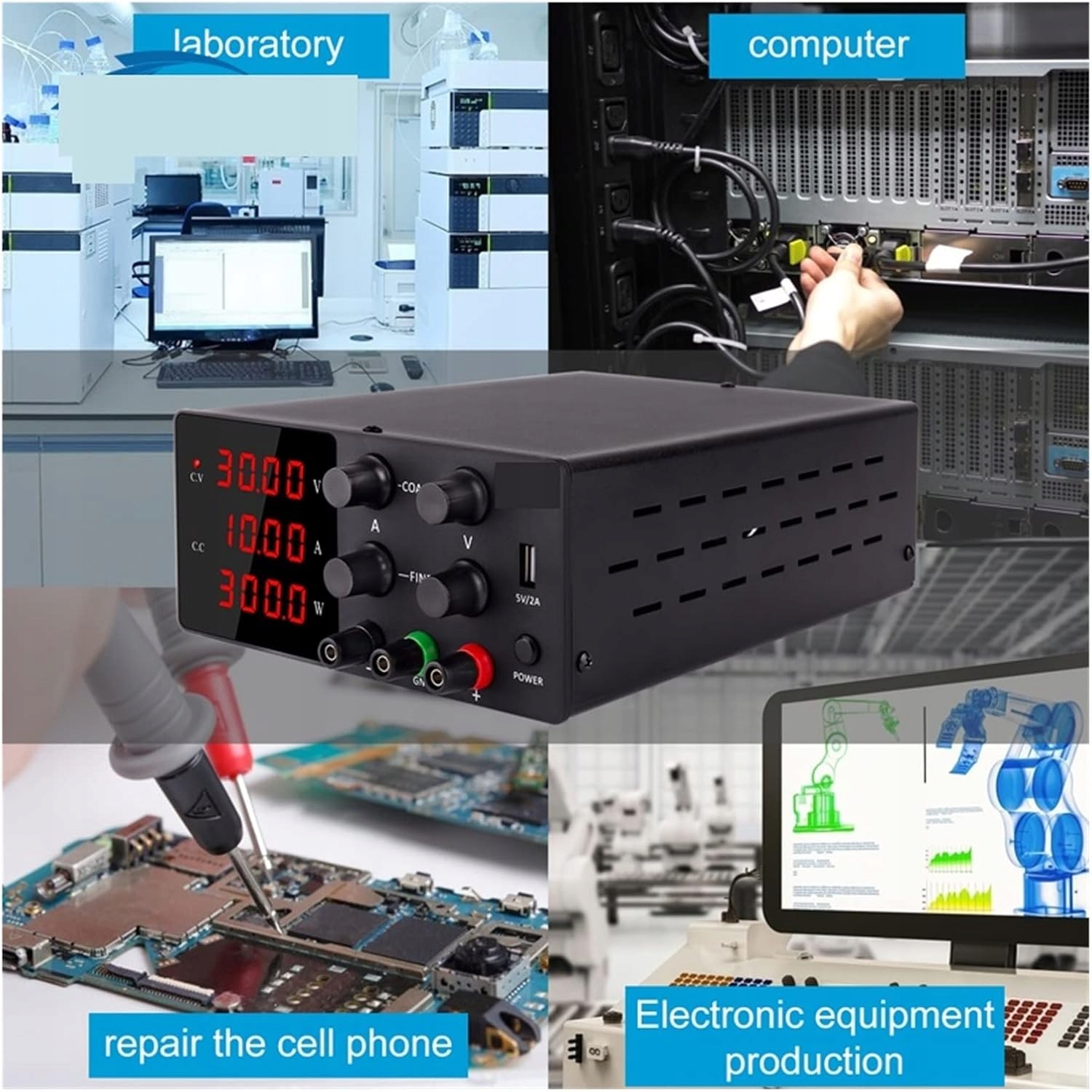 Regulowany zasilacz Ruzizao 30V 10A na profesjonalny zasilacz prądu stałego z napięciem 0,01 V, 0,0 01 A, napięcie zasilania. Podświetlany 4-cyfrowy zasilacz LED ma tę zaletę, że wysoką rozdzielczość można łatwo przeglądać w warunkach słabego oświetlenia .
