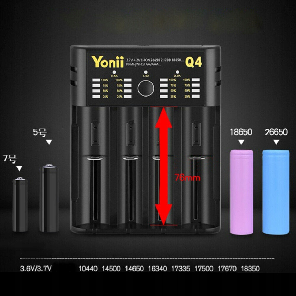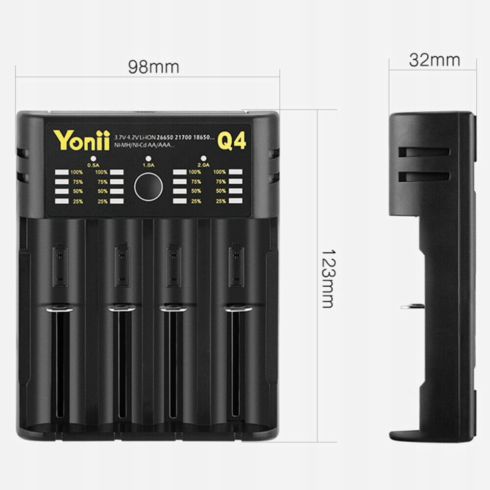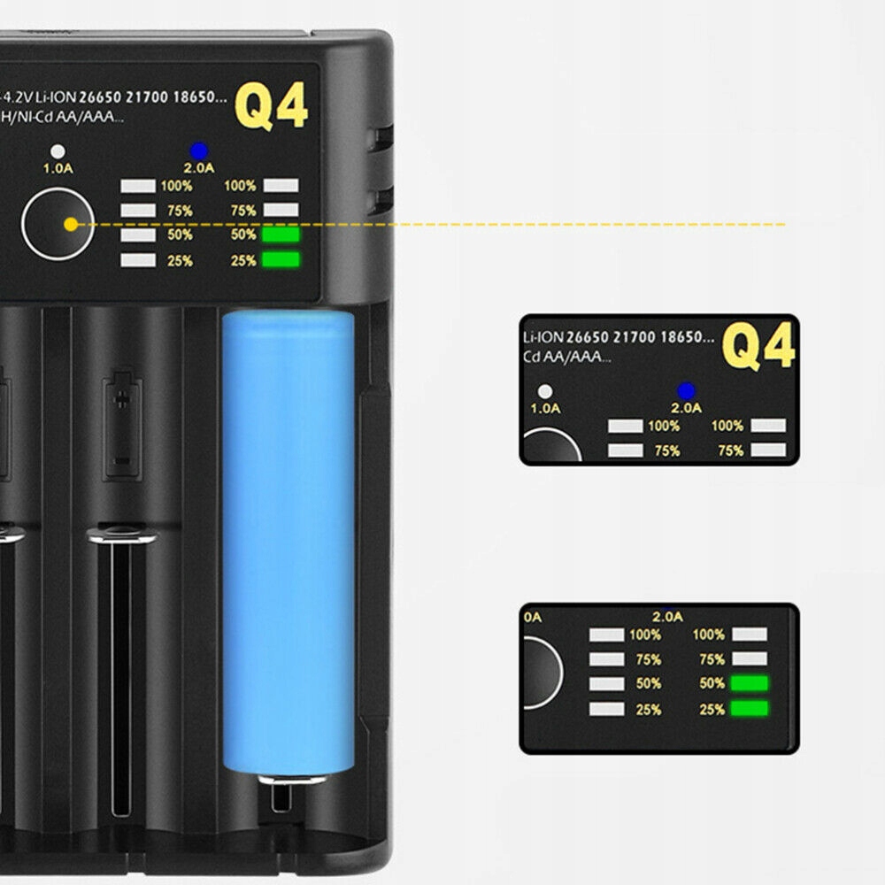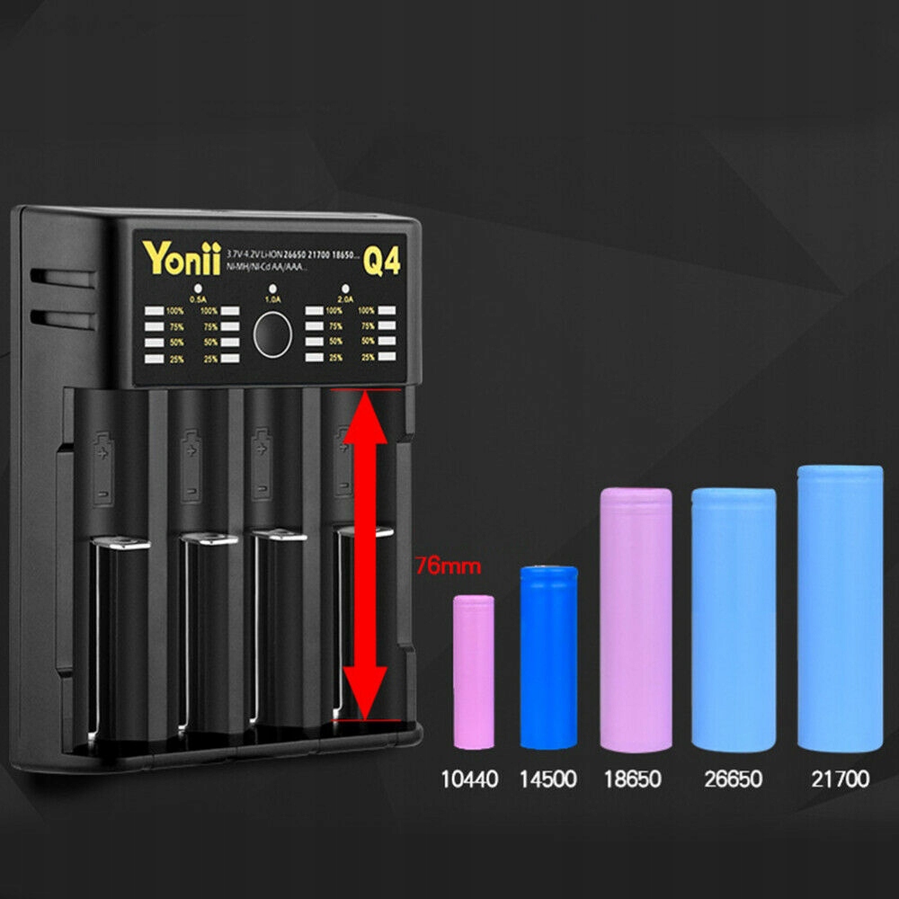 Kompatybilny model: IMR, Li-Ion: 26700, 26650, 26500, 25500, 22700, 21700, 20700, 22650, 22500, 18700, 18650, 18500, 18490, 18350, 17650, 16650, 16340, 14650, 14500, 10400; Ni-MH / Ni-Cd: A / AA / AAA / AAAA / C / SC / F6.