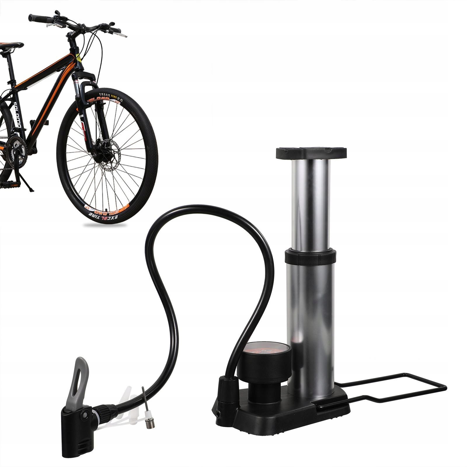 ✅Wykonany z najwyższej jakości materiału ze stopu aluminium, ten inflator nożny z miernikiem ciśnienia może z łatwością między zaworem francuskim a zaworem amerykańskim, duża kompatybilność i wygodny do pompowania opony rowerowej.