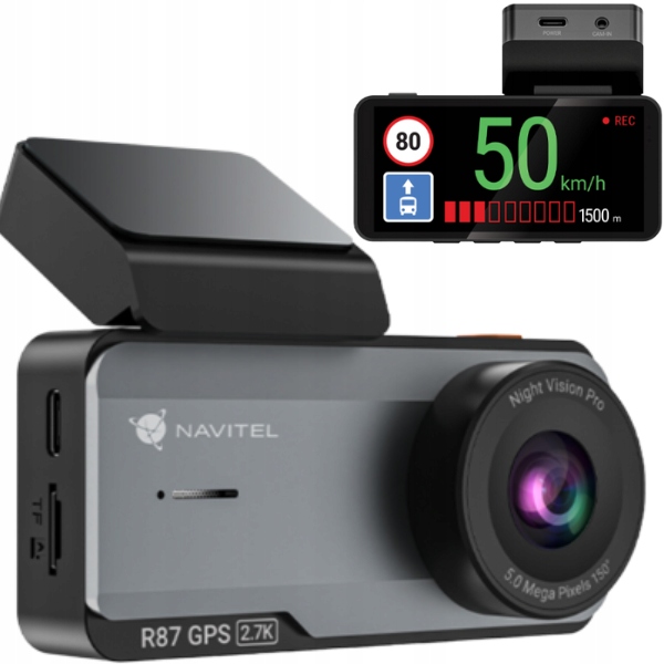 NAVITEL R87 GPS to zaawansowany wideorejestrator z matrycą SONY STARVIS 2 IMX675, nagrywający w 2,7K @30 FPS. Wyposażony w GPS, cyfrowy prędkościomierz, moduł Wi-Fi i G-sensor z trybem parkingowym, zapewnia bezpieczeństwo i wygodę obsługi przez aplikację Navitel DVR Center.