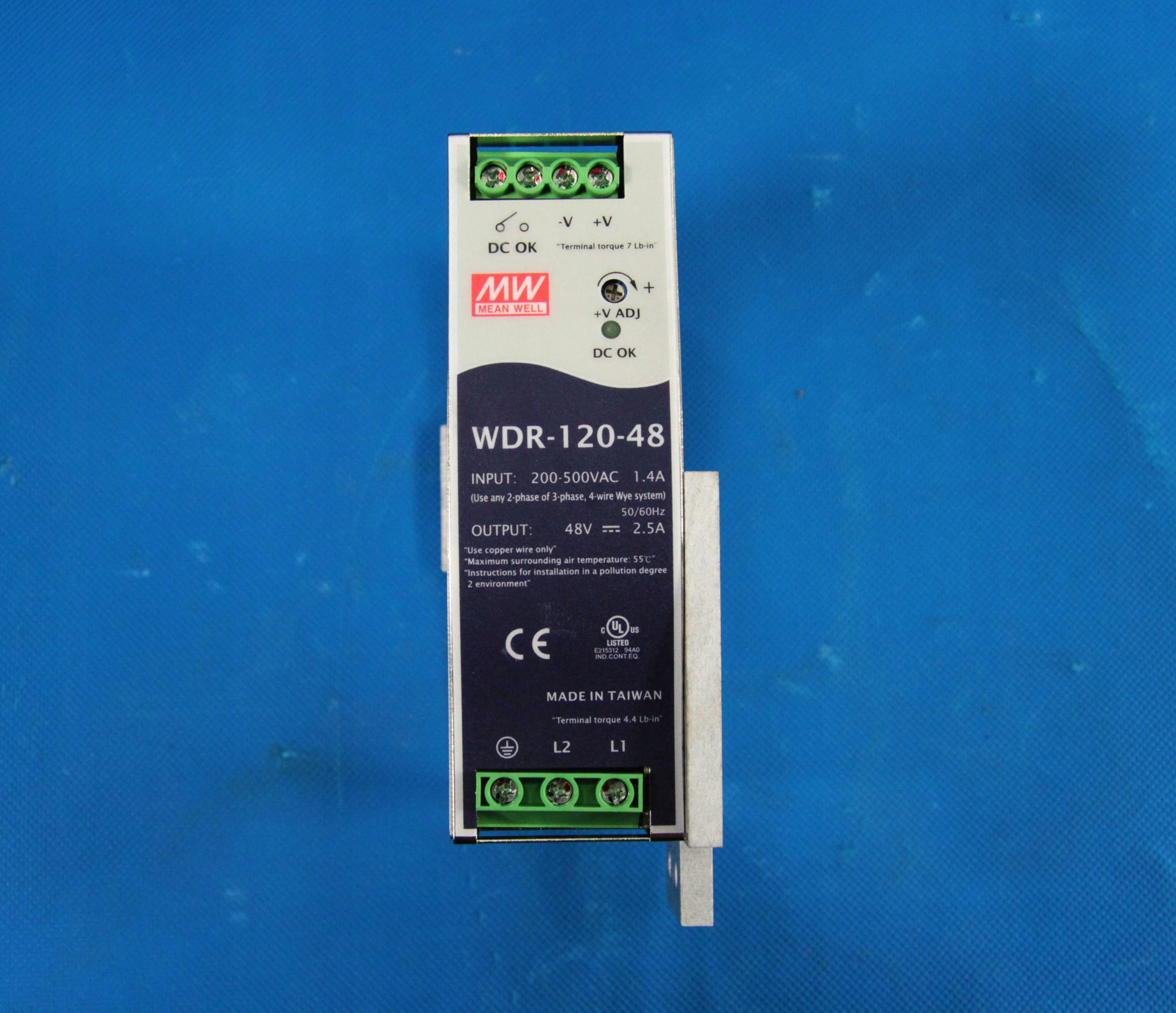 Jest to przemysłowy zasilacz o napięciu wyjściowym 48V i maksymalnym prądzie wyjściowym 2,5A