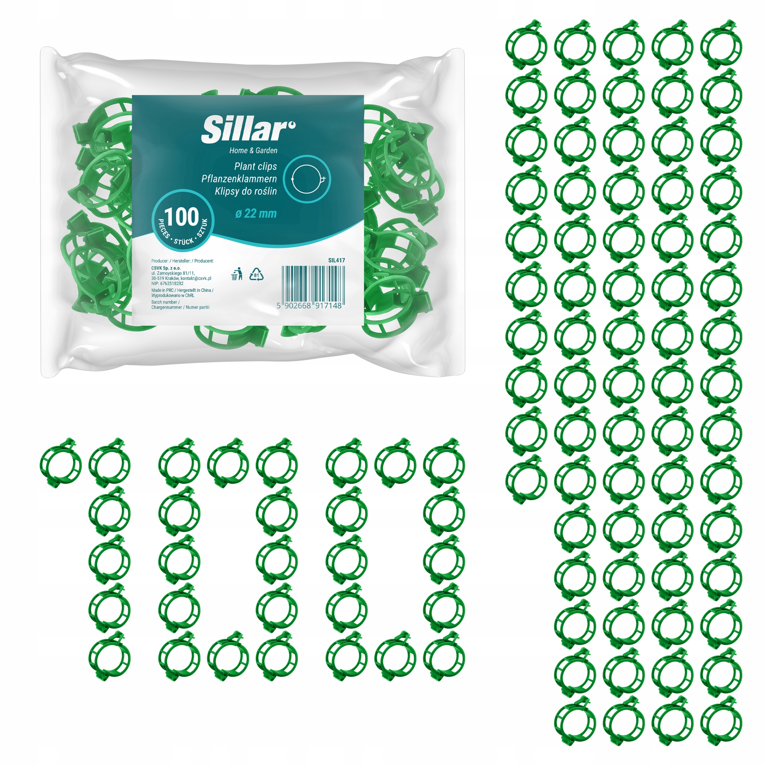 Wyprofilowane klipsy utrzymują łodygi w stabilnej pozycji bez ryzyka ich ściśnięcia czy uszkodzenia. Dzięki temu rośliny rosną prosto i zdrowo, bez przesuwania się i opadania w miarę wzrostu.
