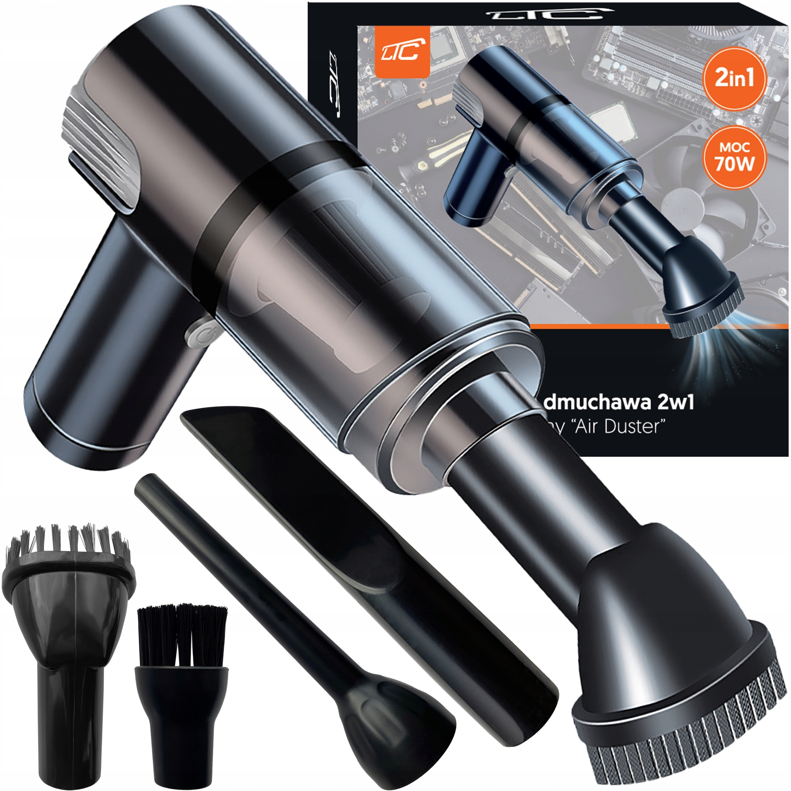 Urządzenie 2w1 dmuchawa i odkurzacz elektryczny doskonale sprawdzi się w czyszczeniu szerokiego zakresu sprzętów, takich jak komputery, sprzęt fotograficzny, audio-wideo, konsole do gier, urządzenia biurowe i AGD. Jest również idealnym narzędziem do czyszczenia trudno dostępnych miejsc w meblach, samochodach, biżuterii, modelach, urządzeniach kuchennych, a także do usuwania martwych owadów i pajęczyn. Dzięki łatwej zmianie funkcji z dmuchawy na odkurzacz, zaledwie jednym ruchem, możesz bez problemu pozbyć się brudu, tam gdzie nadmuch nie wystarcza. Takie wszechstronne urządzenie umożliwia precyzyjne czyszczenie w każdym zakamarku!
