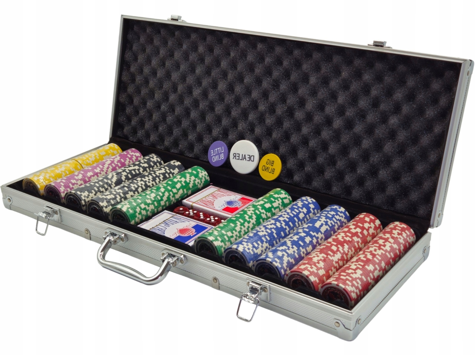 Zestaw do Pokera 500 Żetonów Żetony Texas Poker Walizka Karty Mocny + Mata