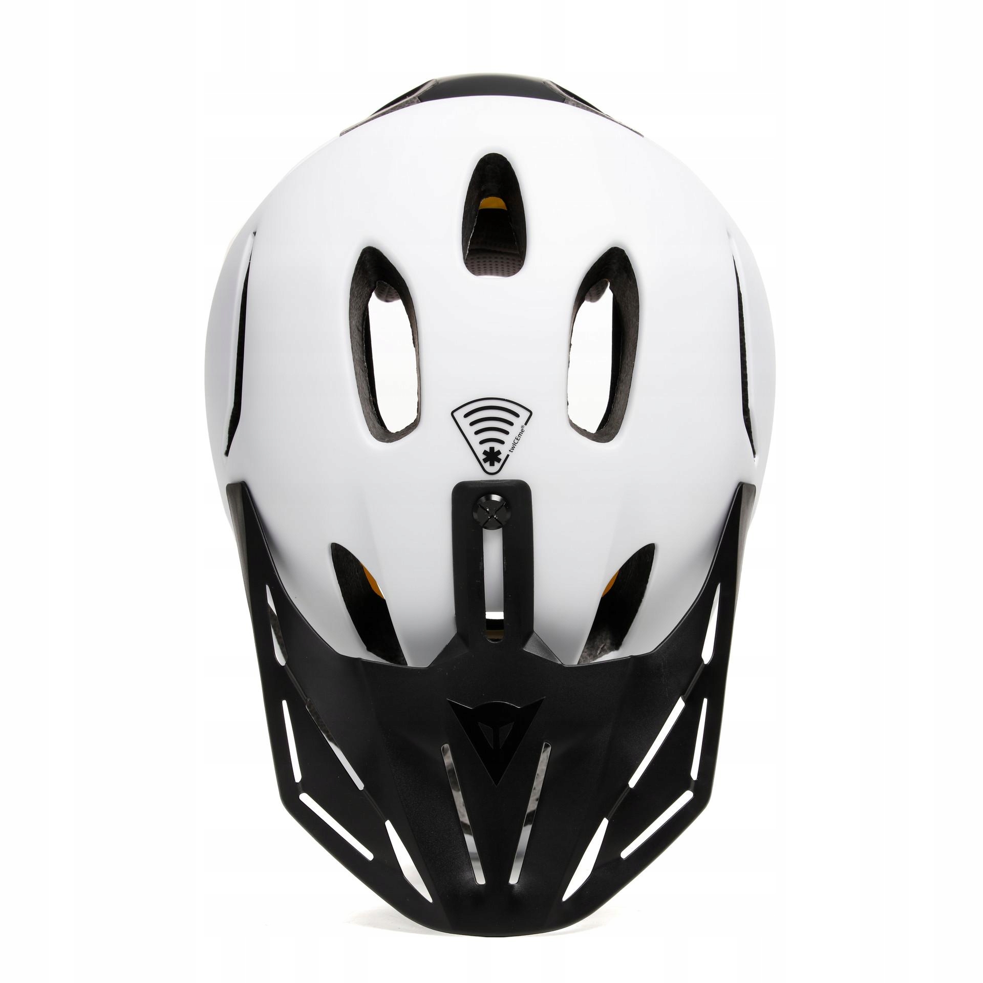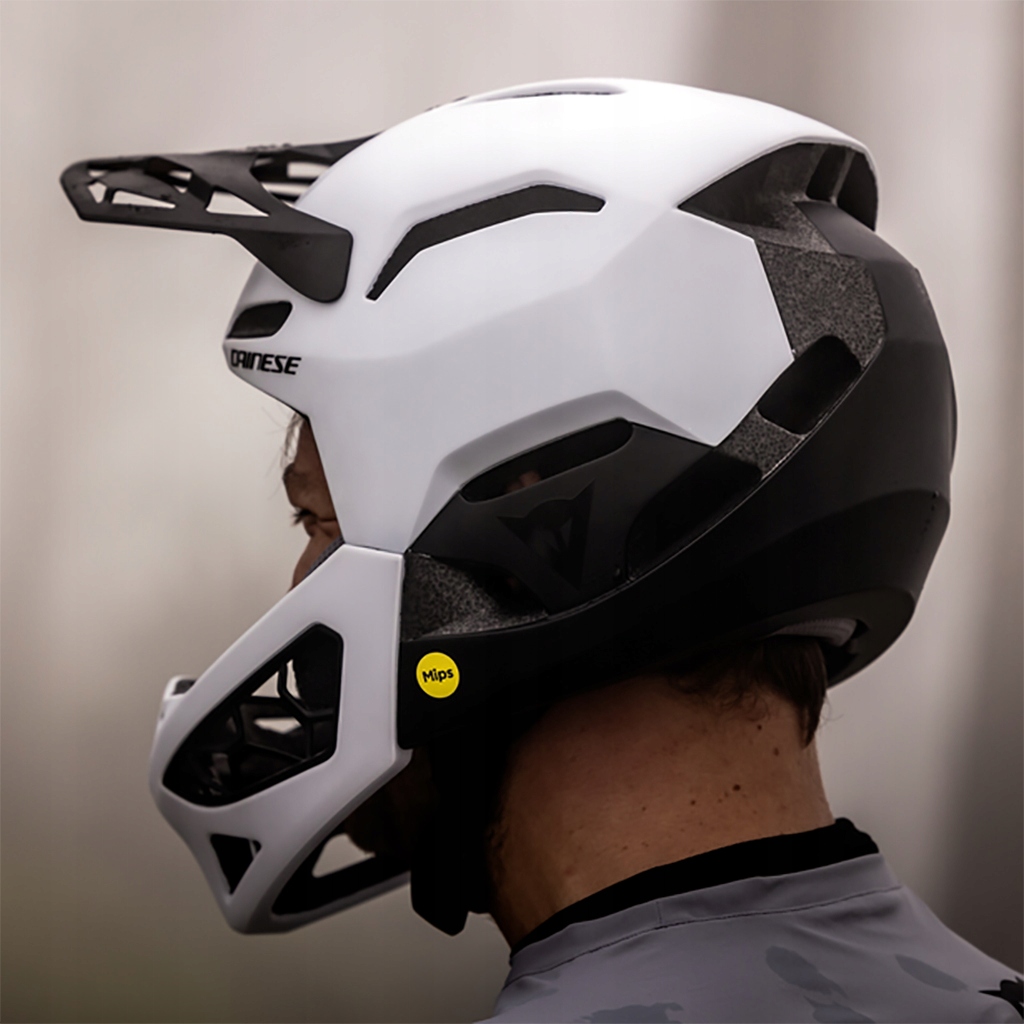 Widoczność jest idealna na każdej trasie i w każdych warunkach dzięki szerokiemu polu widzenia, konstrukcji osłony podbródka, która poprawia linię widzenia nawet na bardziej technicznych odcinkach oraz solidnemu, ale elastycznemu daszek z regulacją nachylenia, który można obsługiwać jednym w dłoni iw rękawiczkach. Forma skorupy została zaprojektowana tak, aby pomieścić gogle, gdy nie są noszone, i jest doskonale kompatybilna z modelami z linii gogli Dainese MTB.