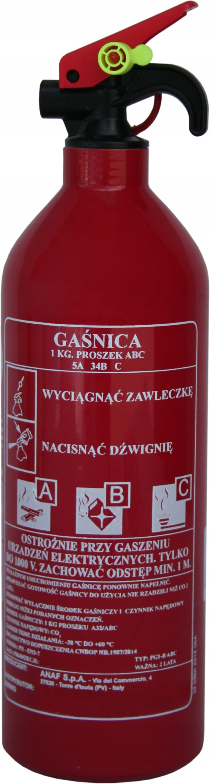 Gaśnica proszkowa 1 kg ABC, wyprodukowana przez renomowaną markę ANAF, to podstawowy element bezpieczeństwa, idealny do ochrony samochodów osobowych, łodzi motorowych, żaglowych oraz przyczep kempingowych.