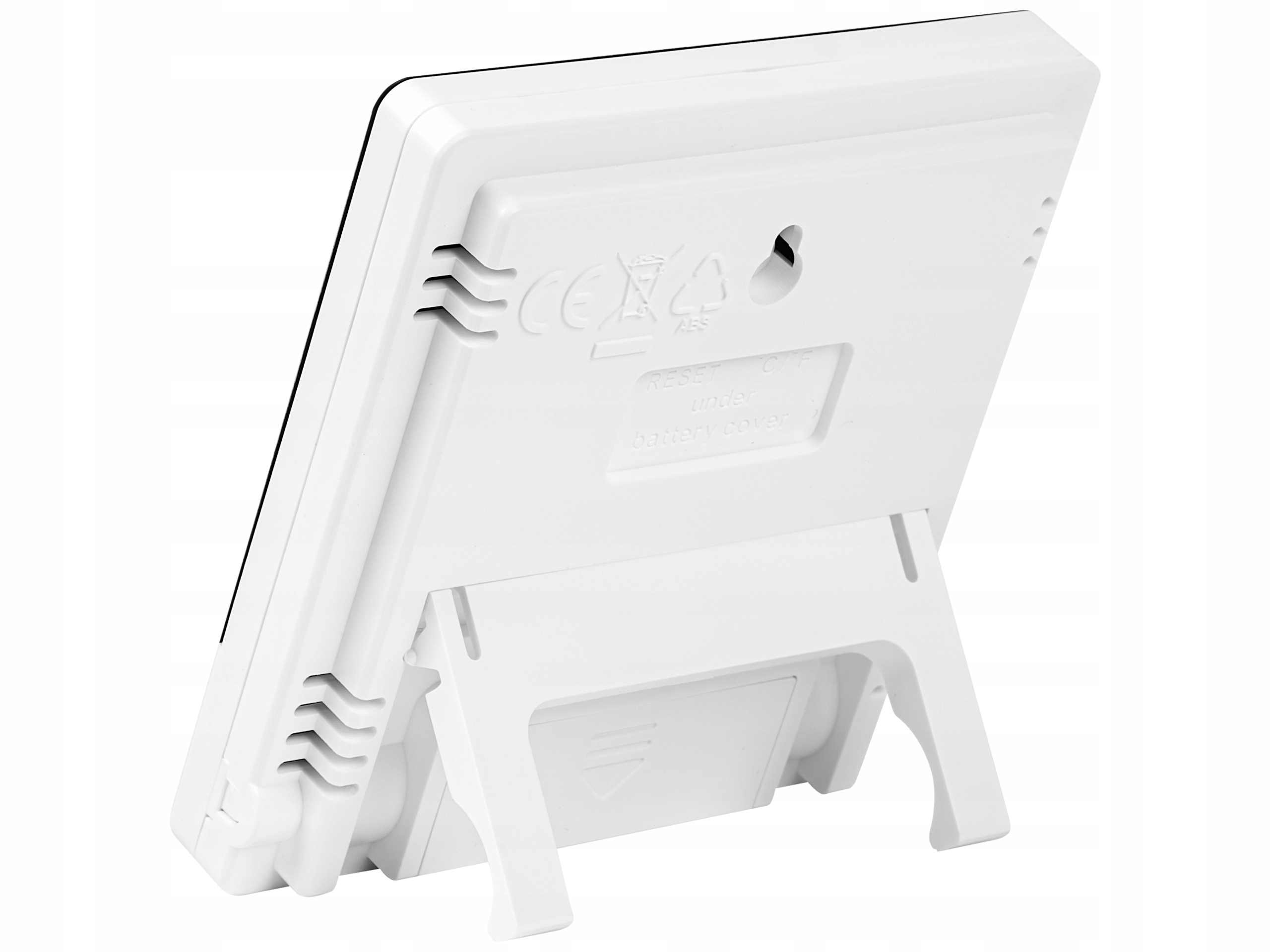 Z tyłu stacji pogody została wmontowana delikatna podpórka, umożliwiająca ustawienie stacji pogody bez konieczności opierania o inne przedmioty. Wbudowane przyciski na przednim panelu ułatwią obsługę oraz zmianę ustawień według własnych preferencji.