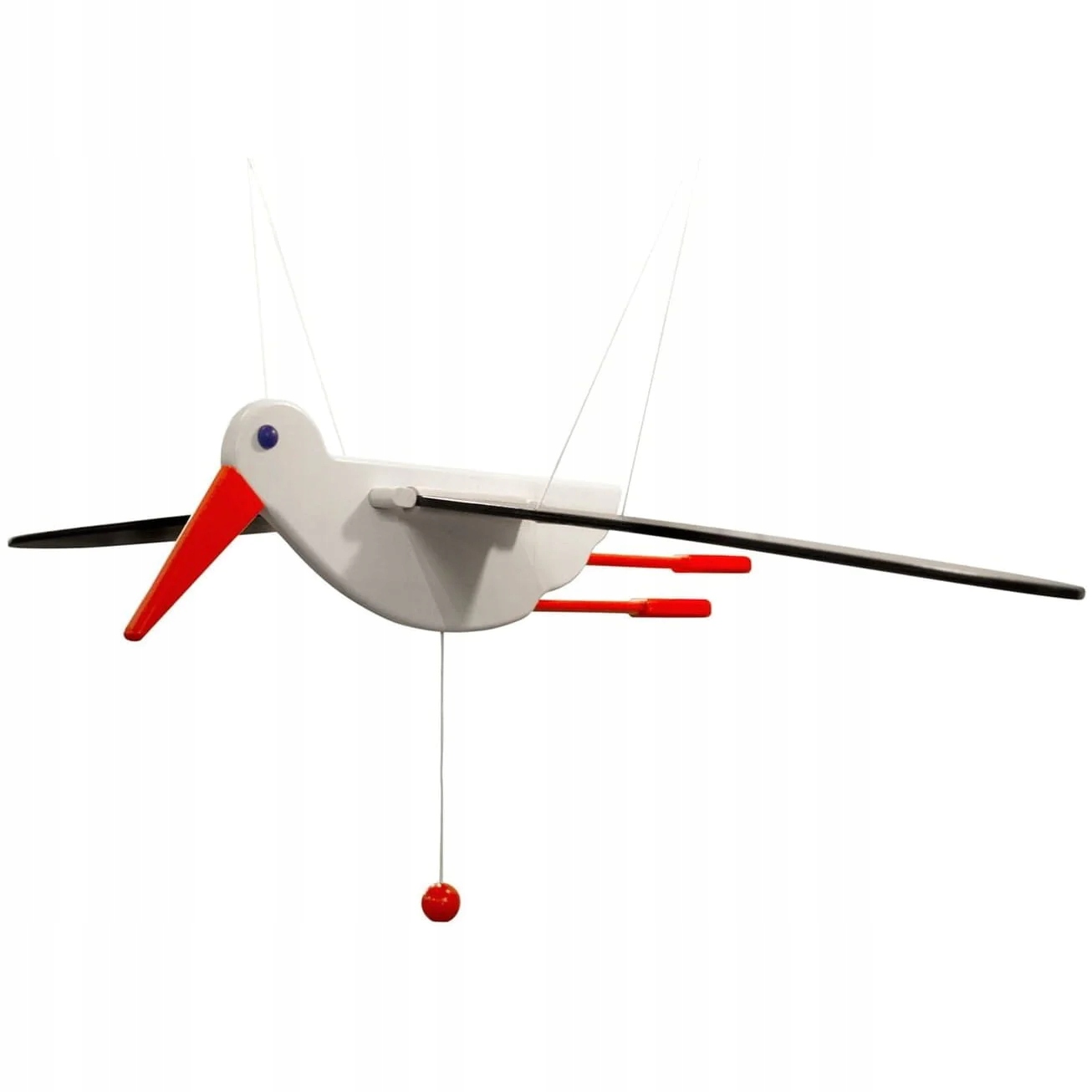 Czyżby nadeszła wiosna? Leci nad nami godny bocian! Delikatnie pociągając za sznurek z kulką w dół wprawiamy zabawkę w ruch, dzięki czemu powstaje wrażenie, że bocian naprawdę leci! Ten płynny i spokojny ruch przyciągnie uwagę malucha i będzie jedną z pierwszych zabawek rozwijających dziecięcą wyobraźnię lub może służyć tylko jako dekoracja. Zalecamy czyszczenie powierzchni zabawki tylko wilgotną szmatką. Proszę nie wystawiać tej zabawki na działanie wysokiej temperatury lub wysokiej wilgotności, drewno może się zginać i odkształcać w tych warunkach. Spełnia wszystkie europejskie normy bezpieczeństwa. Główne cechy: wykonane z naturalnych źródełłatwe do recyklinguprojekt Wojciech Bajor