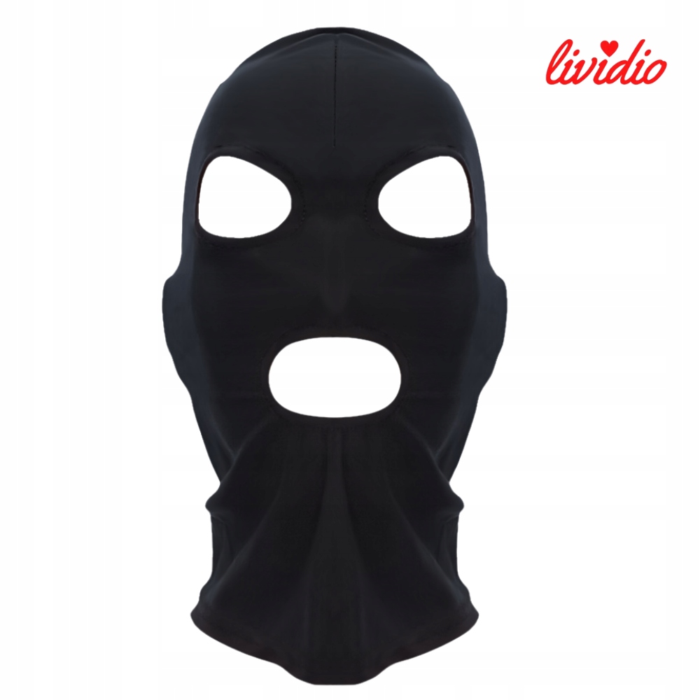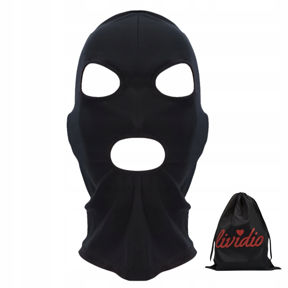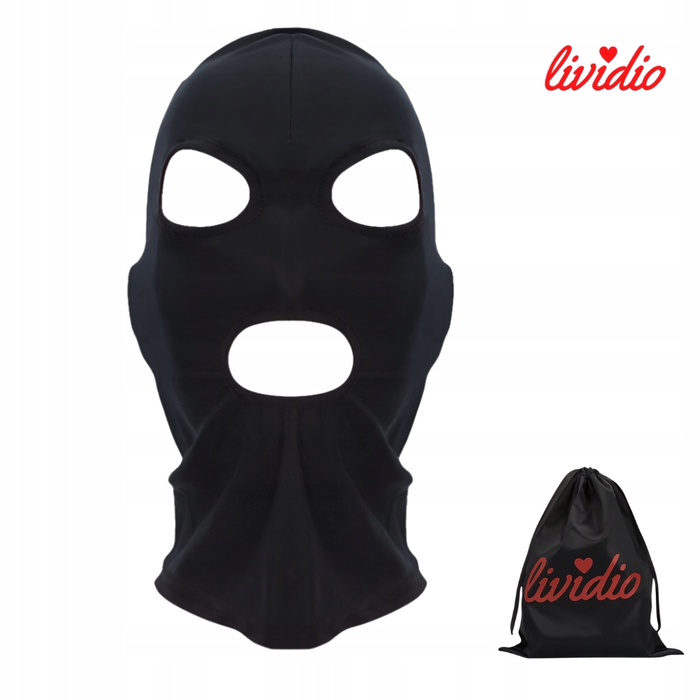 Maska BDSM z otworami na oczy i usta + satynowa torebka GRATIS