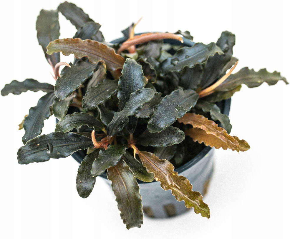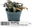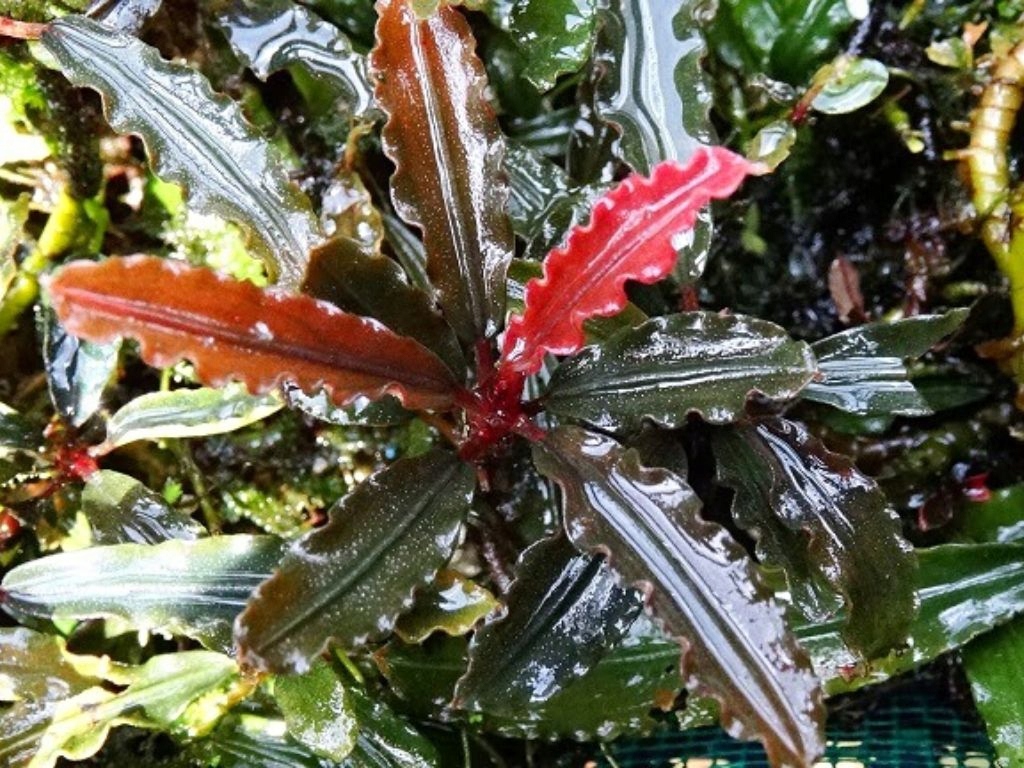 Bucephalandra Biblis Red to rzadka, wolno rosnąca roślina akwariowa o falistych liściach o niskich wymaganiach świetlnych, przypominająca małe gatunki roślin z rodzaju Anubias. Liście tego gatunku są różnie czerwonawe na górnej i dolnej stronie. Czerwona łodyga jest bardzo efektowna, a roślina ma tendencję do bycia zieloną, gdy jest młoda.
