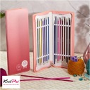 SERIA DRUTÓW METALOWYCH ZING w w metalicznej, błyszczącej powłoce, w kolorach odpowiadającym konkretnym rozmiarom oraz błyszczącymi srebrnymi końcówkami o średniej ostrości - odpowiednimi dla każdego rodzaju włóczki i robótki nadaje się idealnie do dziergania z każdego rodzaju włóczki.