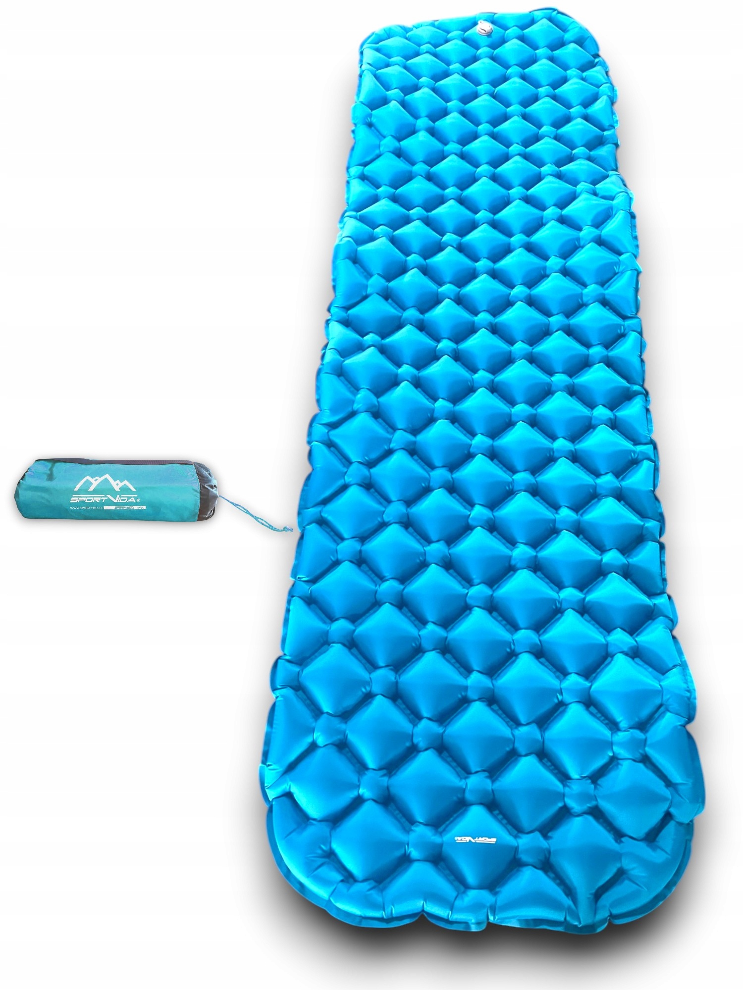 NADMUCHIWANY MATERAC TREKKINGOWY SPORTVIDA to doskonałe rozwiązanie dla osób, które poszukują ultralekkiego i kompaktowego rozwiązania do wszelkich wypraw trekkingowych oraz do relaksu w ogrodzie, do spania pod namiotem, do odpoczynku w lesie czy na plaży.