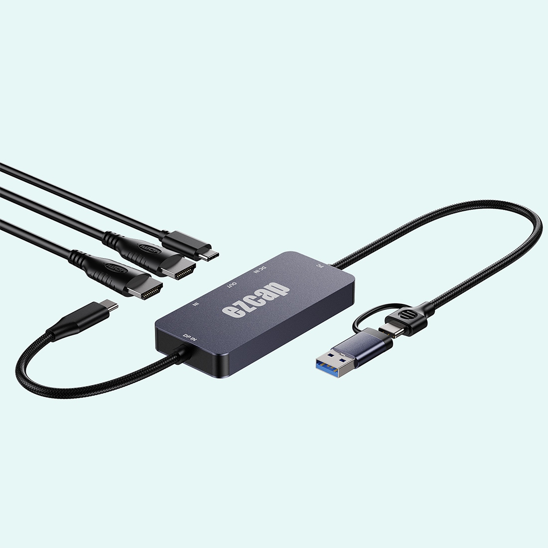 Kable zintegrowane: ~20cm USB-C PC i ~100cm DP IN USB-C
