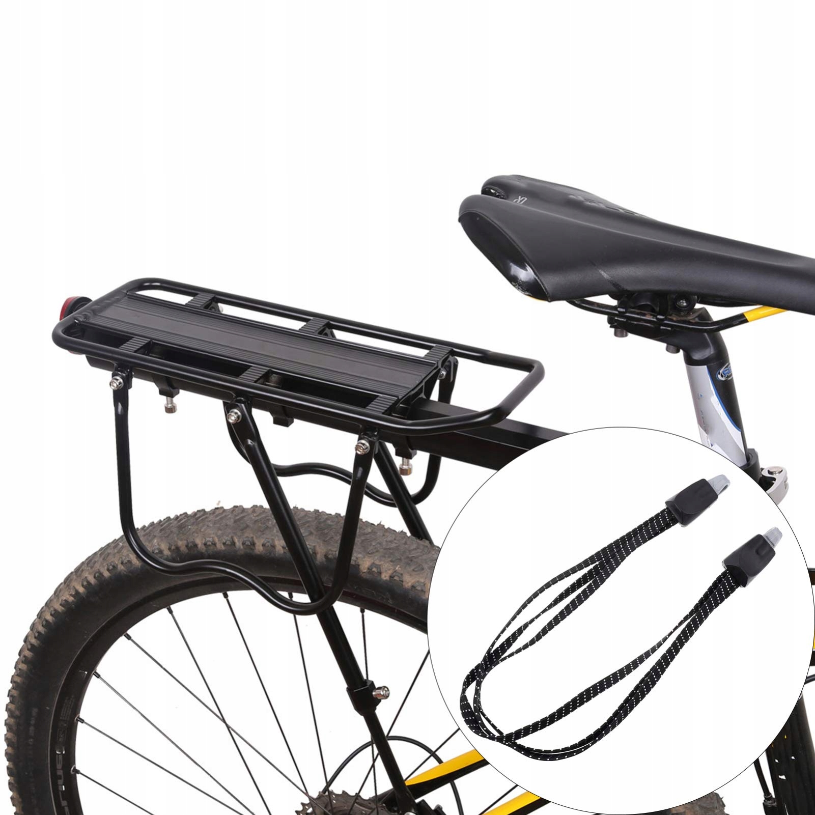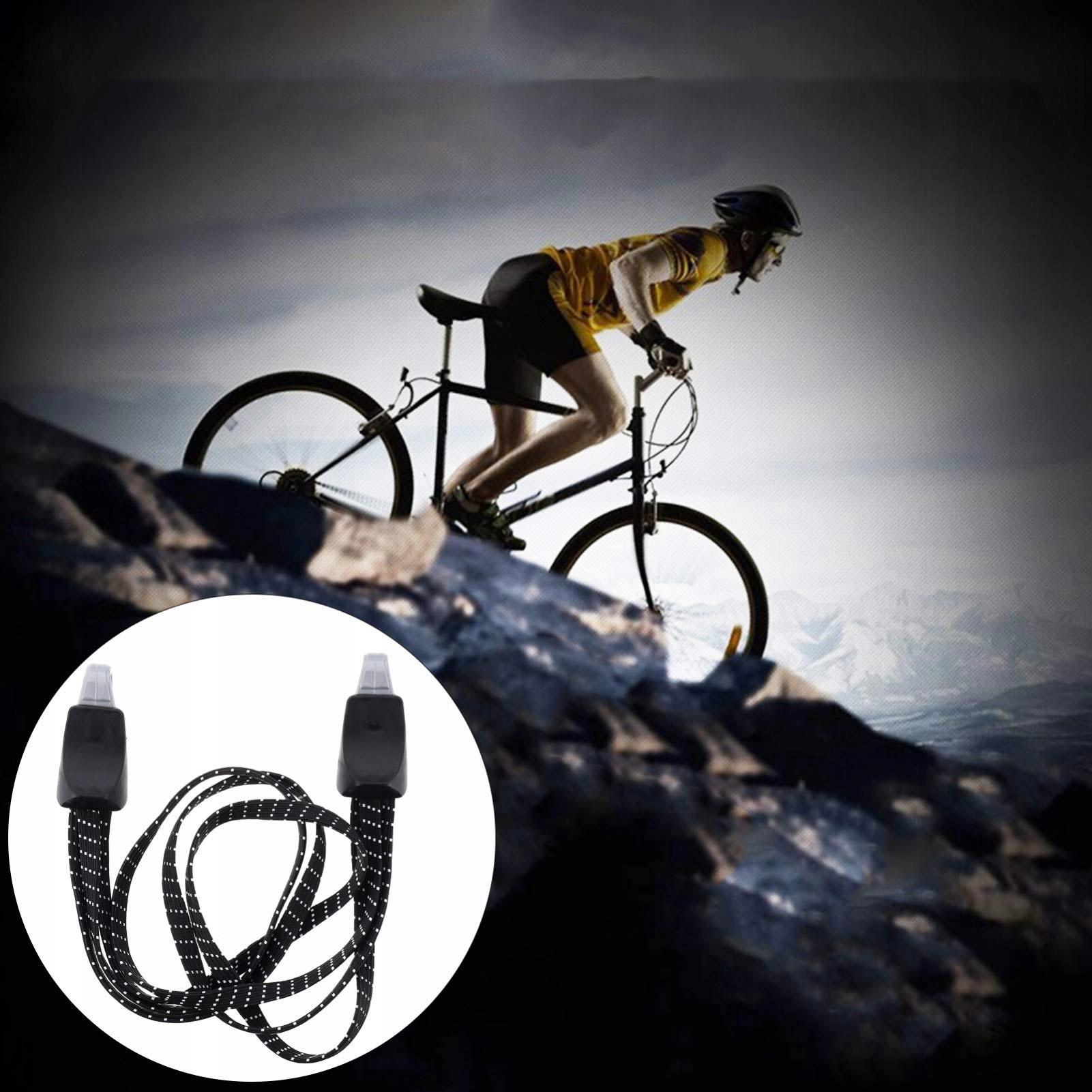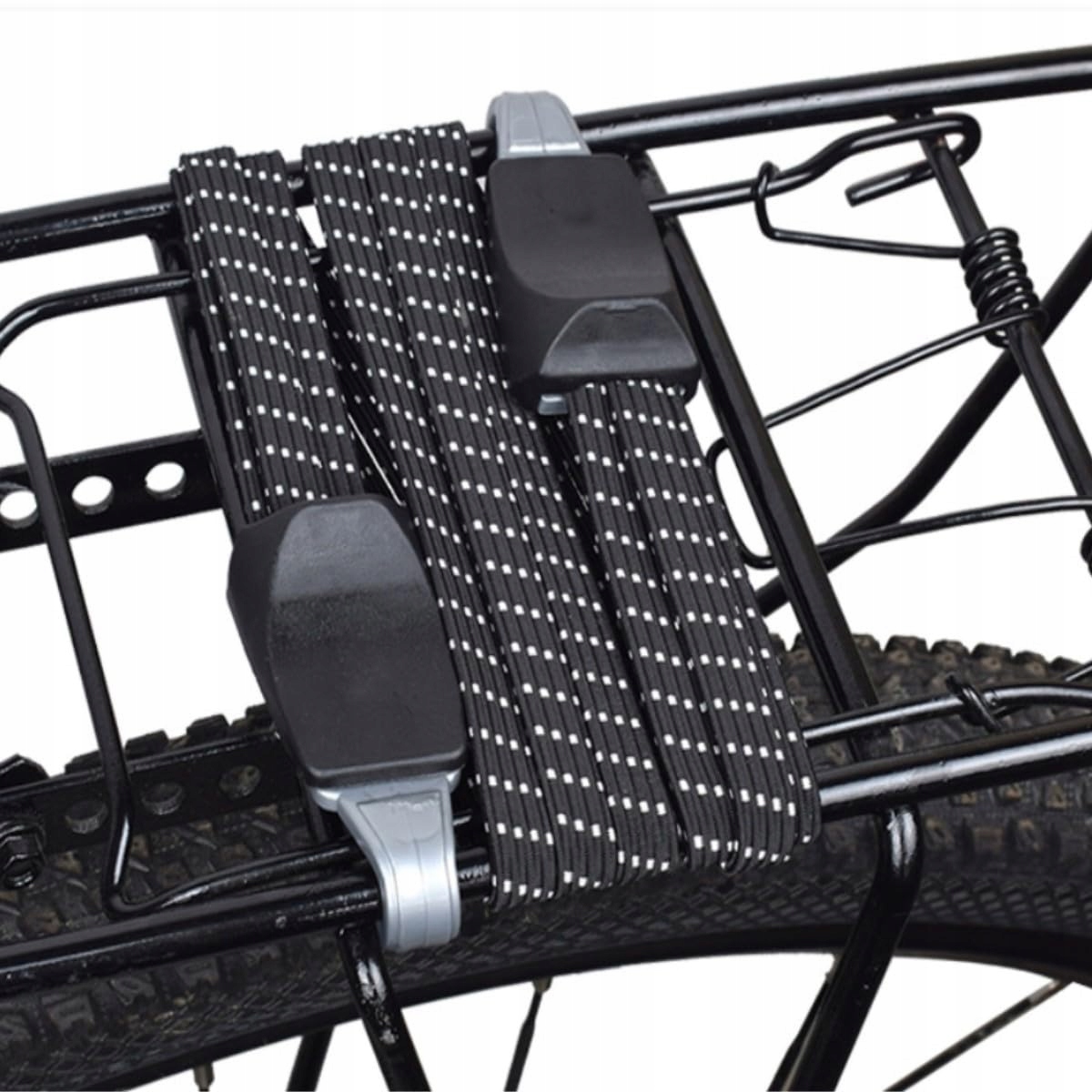 MATERIAŁ: Ten elastyczny pasek rowerowy jest wykonany z wysokiej jakości nylonu, ma 2 liny. Elastyczny zasięg: 65 cm.