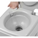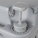 Spłukiwanie odbywa się za pomocą ręcznej pompki, umieszczonej po lewej stronie wewnątrz toalety.