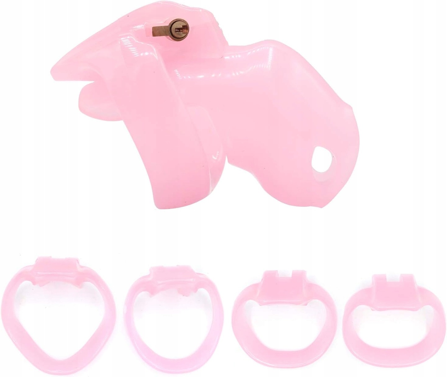 MAŁY RÓŻOWY PAS CNOTY KLATKA NE PENISA COCK CAGE CHASTITY 4 PIERŚCIENIE