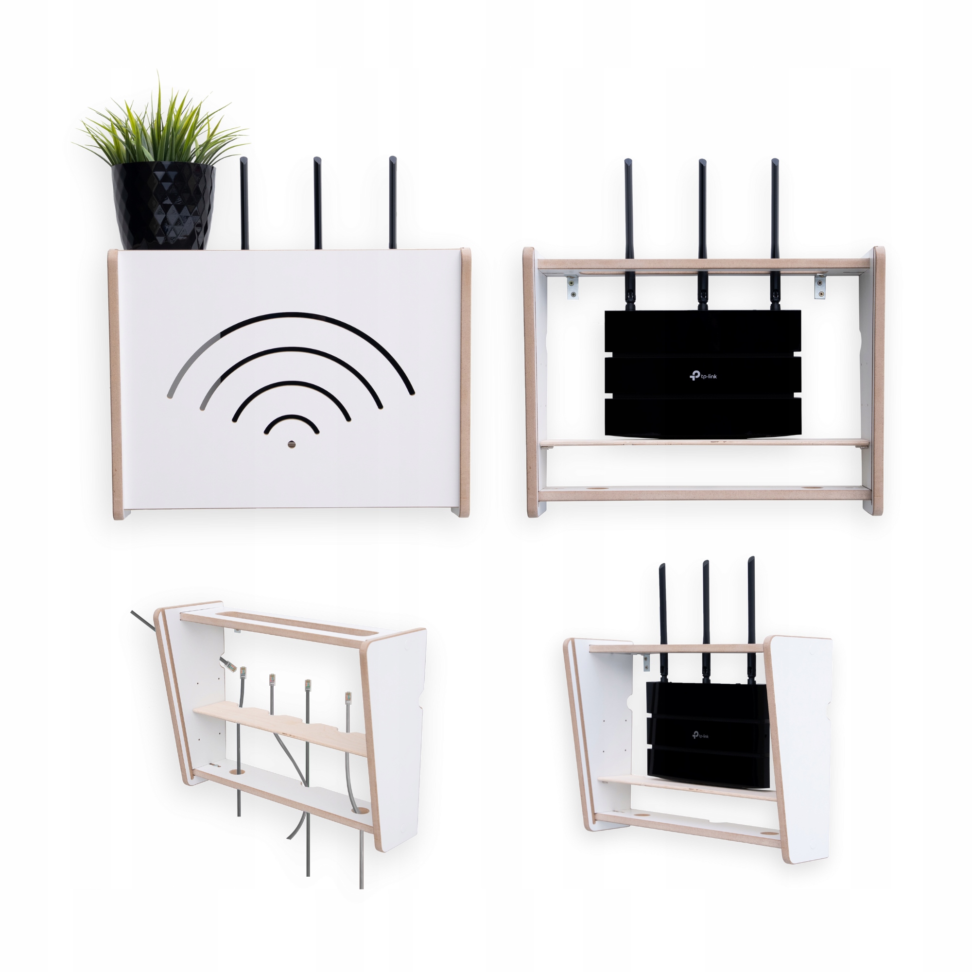 Szafka na router jest nie tylko atrakcyjnym elementem wystroju wnętrza ale i ciekawym rozwiązaniem aby urzymać porządek i zaoszczędzić miejsce. Daje nam wiele możliwości przechowywania niewielkich sprzętów elektronicznych wraz z okablowaniem. Idealnie nadaje się do domowego biura jak i salonu. Nowoczesny wygląd półki na router doskonale wpasuje się w każde pomieszczenie. Wymiary skrzynki zostały dopasowane aby pomieścić w niej router lub inny maly sprzęt elektroniczny wraz z okablowaniem. Wewnętrzna półka daje możliwość regulacji na dwóch poziomach co pozwala dopasować produkt do naszych potrzeb. Calość wykonana ze sklejki, wytrzymałego i estetycznego materiału.