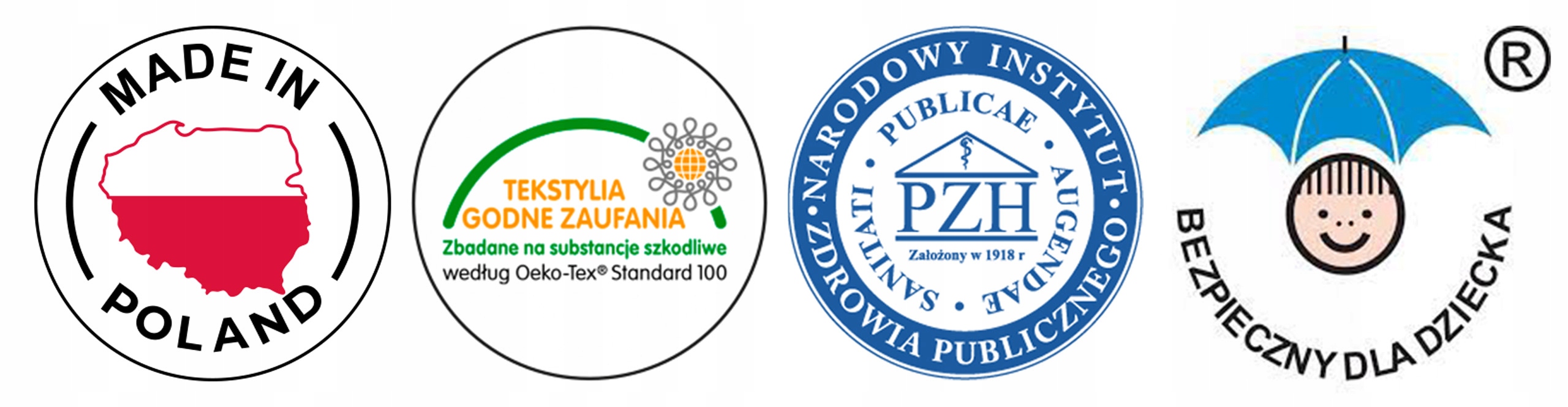 ✅ Do szycia wykorzystane są wyłącznie sprawdzone materiały, bezpieczne dla dziecka.