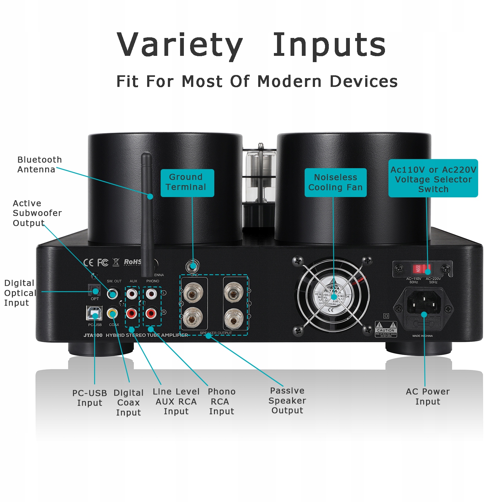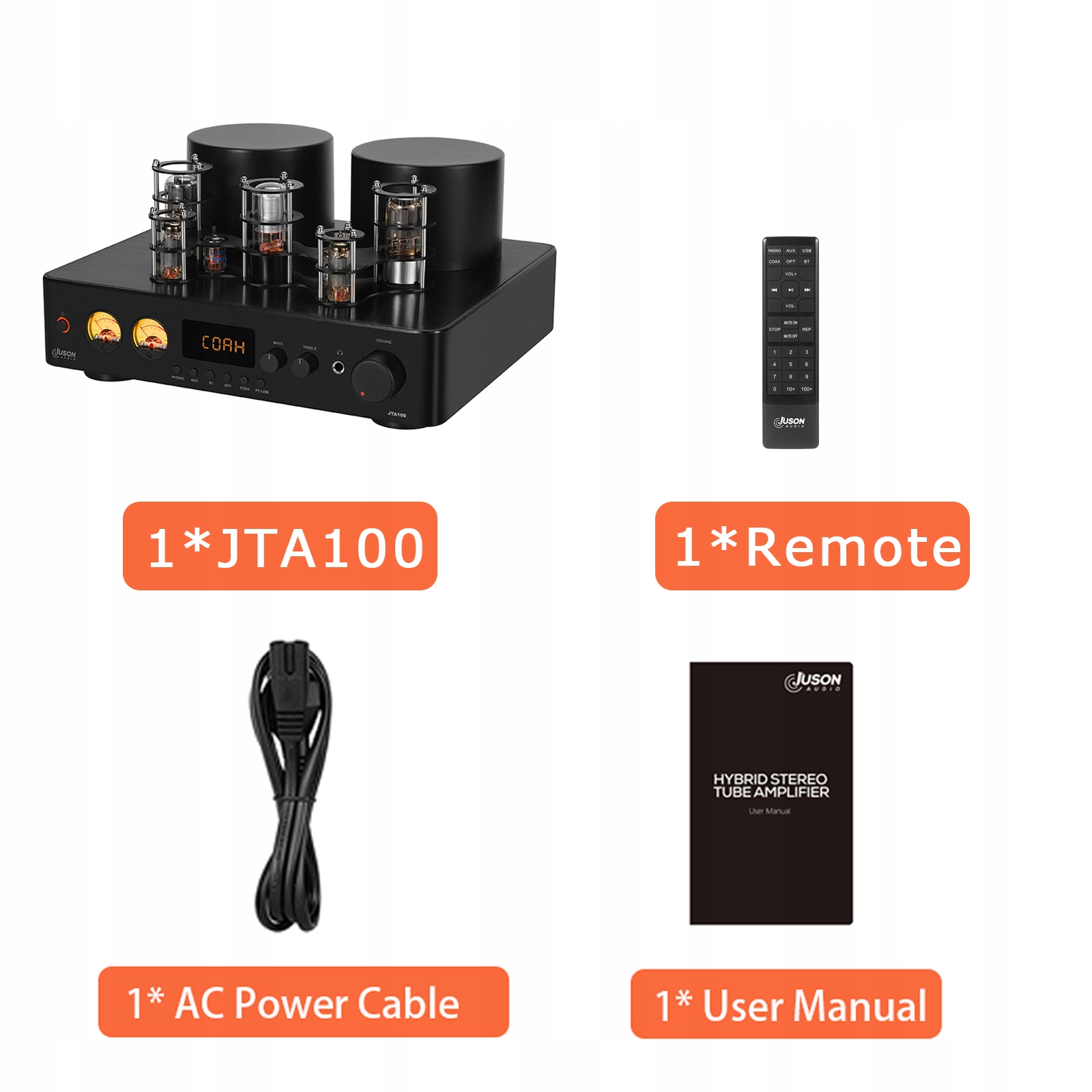 Juson Audio JTA100 200W Wzmacniacz lampowy próżniowy zintegrowany hybrydowy z BT 5.0 optycznym wejściem AUX RCA PHONO i wyjściem słuchawkowym 2.1CH klasa AB HIFI Home Audio dla gramofonu