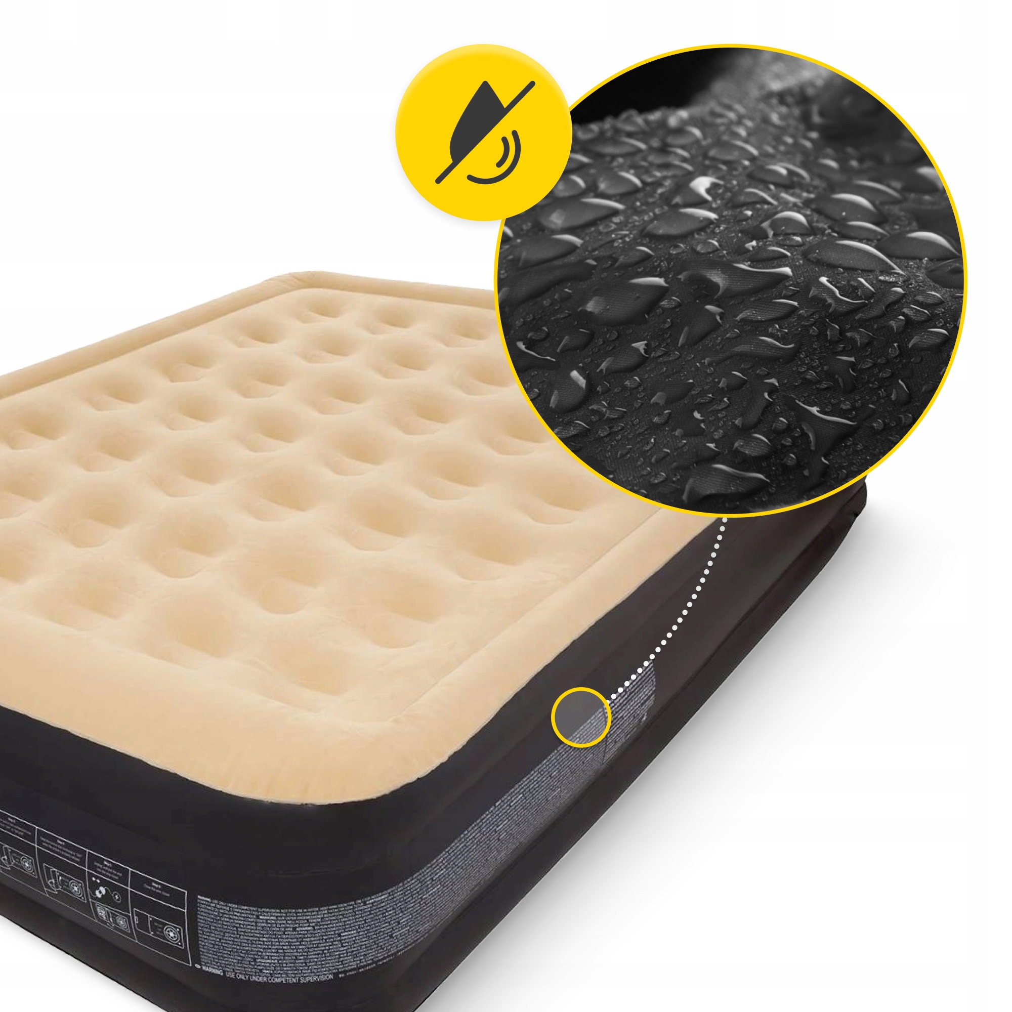Dwuosobowy materac dmuchany do spania został wykonany z trwałych materiałów, które dobrze izolują od podłoża i zapewniają ochronę przed uszkodzeniami mechanicznymi. Przemyślany podział na sekcje oraz odpowiednia grubość zapewniają niesamowitą miękkość i komfort, spełniając oczekiwania wymagających użytkowników. Zaokrąglone brzegi zwiększają wygodę podczas leżenia, a jego elastyczna struktura doskonale dopasowuje się do kształtu ciała. Materac jest odporny na wilgoć, co czyni go idealnym wyborem na każdą podróż. Co więcej, miękka, welurowa powierzchnia materaca dmuchanego zapewnia przyjemny, relaksujący odpoczynek.