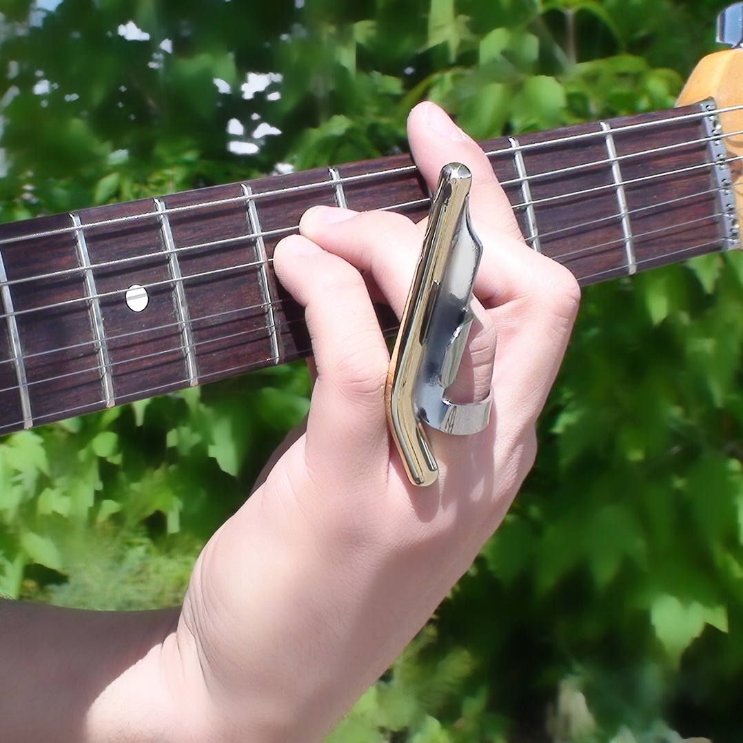 Firma Jetslide daje wyjątkową możliwość wykorzystania techniki slide podczas gry na gitarze, nie utrudniając korzystania z palców podczas gry w tradycyjnym stylu. Jetslide jest przeznaczony głównie do umieszczenia na pierścieniu, gdzie można go bardzo łatwo i szybko obrócić, dzięki czemu masz palec dostępny do zwykłego grania akordów lub solówki. W razie potrzeby ponownie slide można równie łatwo powrócić do pozycji gry.